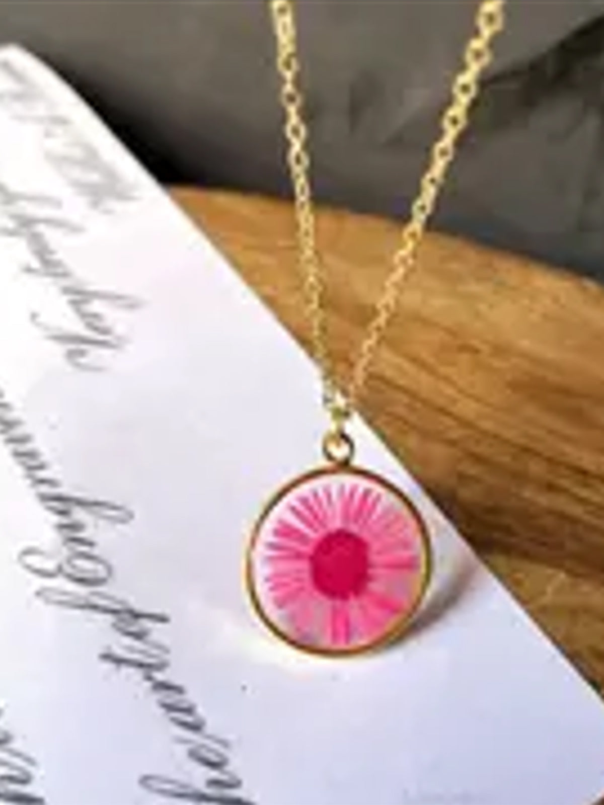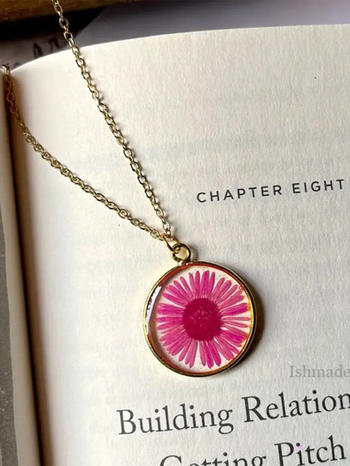 Introducing our exquisite Dark Pink Aster Flower Locket, a timeless piece of nature's beauty captured in elegant craftsmanship. Crafted with delicacy and care, each locket encases a real Dark pink aster flower, preserving its ethereal charm for eternity. Wear it close to your heart and let the soft, delicate petals of the Dark pink aster flower evoke feelings of serenity, joy, and connection to the natural world. Our Aster Flower Locket is not just a piece of jewelry—it's a celebration of nature's exquisite beauty, captured in a timeless treasure that will be cherished for years to come. Comes with a golden chain. The size of the pendant is 2.5 cm