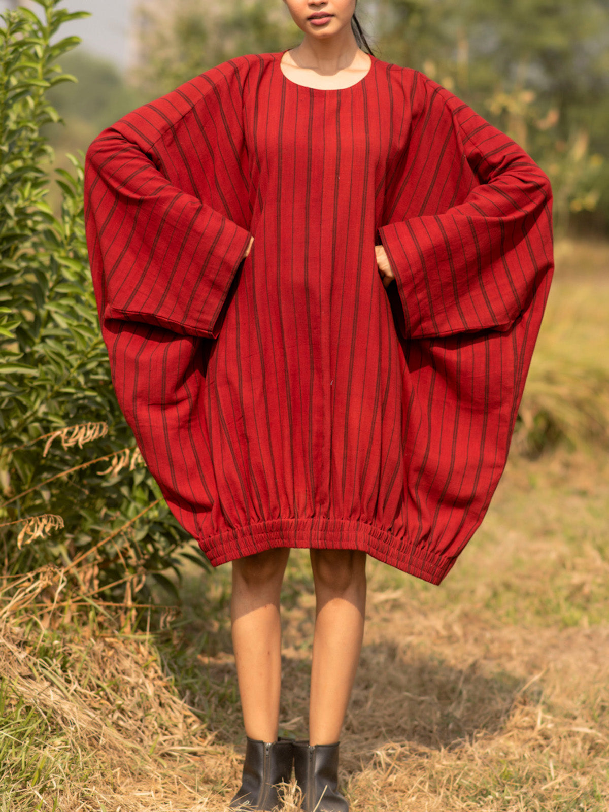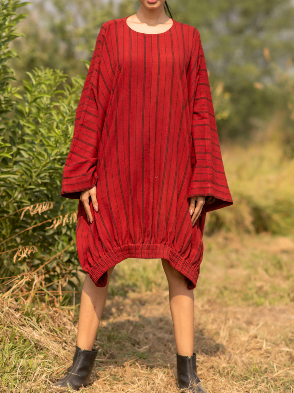 This stylish dress blends contemporary and timeless aesthetics effortlessly. Featuring a sophisticated back chain detail and relaxed sleeves, it offers both elegance and comfort. The elastic front hem ensures a flattering silhouette, while practical pockets enhance its functionality. Perfect for any occasion, this dress seamlessly combines fashion-forward design with everyday ease.