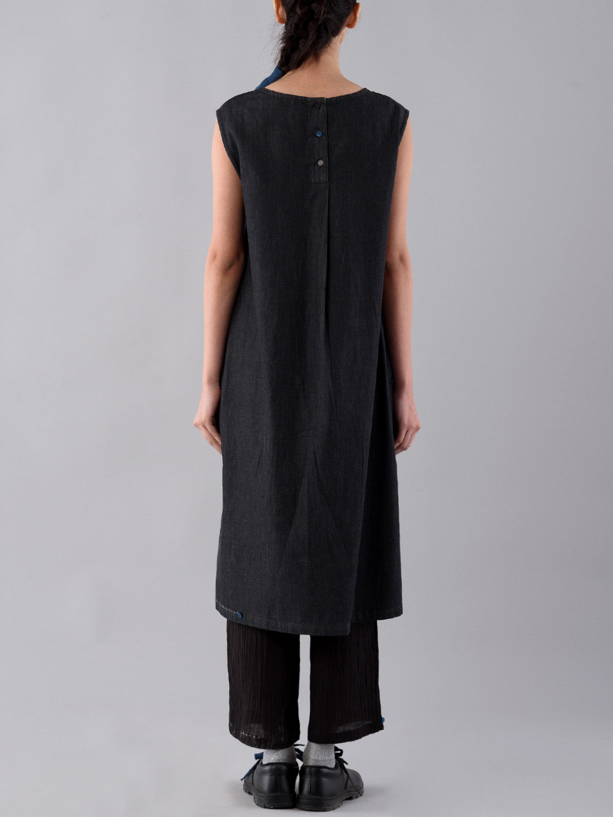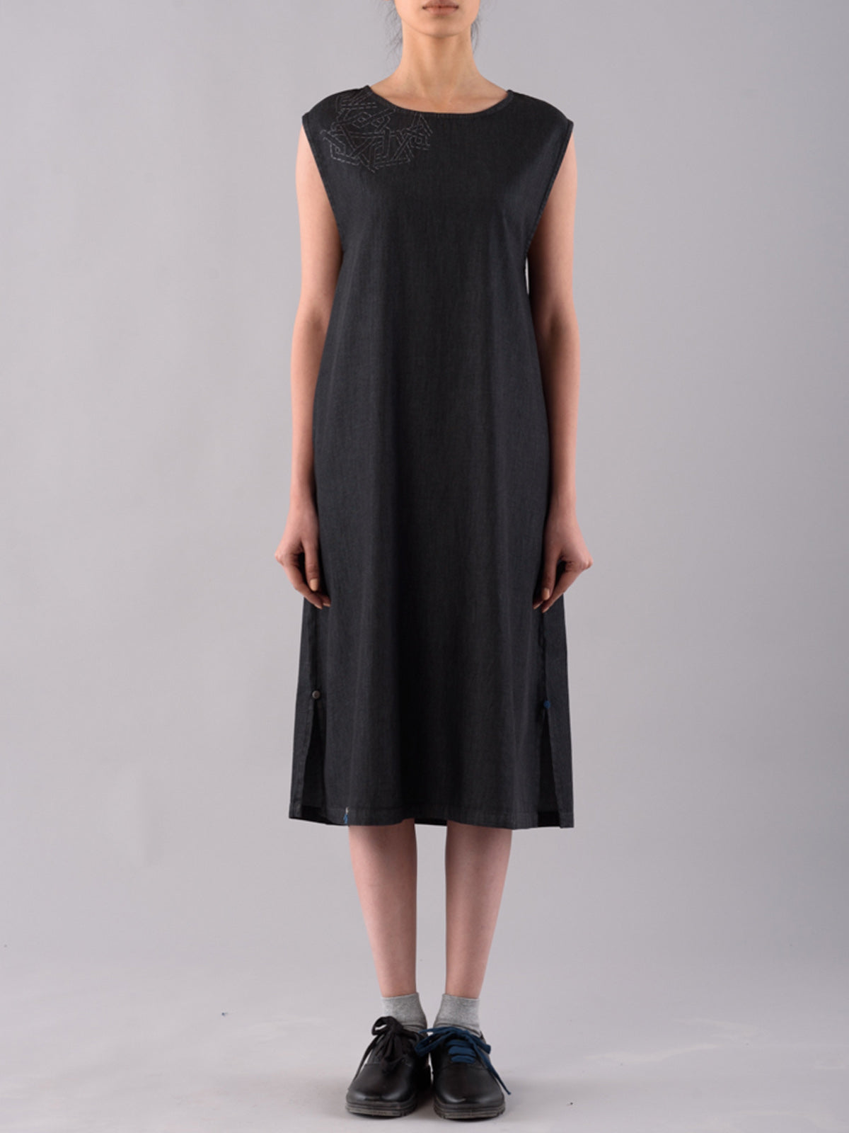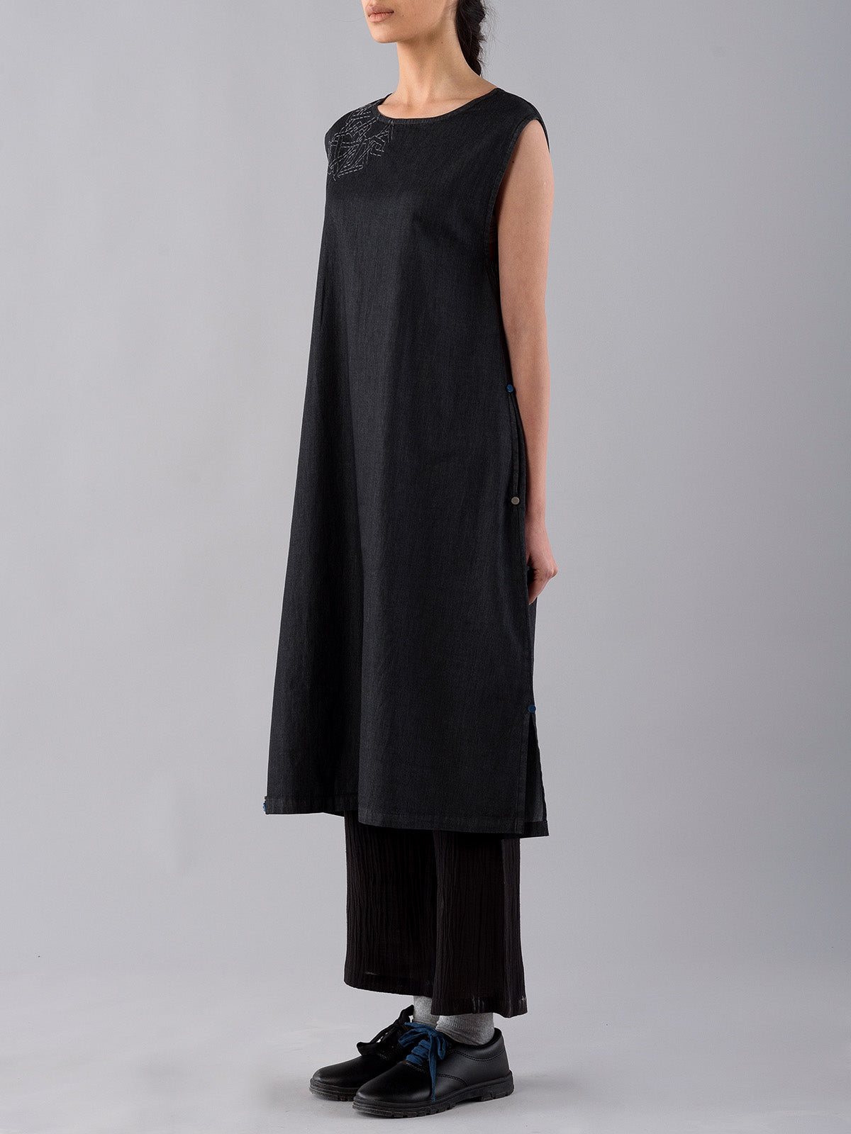 This tunic has been detailed with a hand embroidery technique called sashiko. Crafted from naturaly dyed cotton fabric this tunic has handwork on it by skilled artisans. This denim blue day tunic is a versatile denim dress that can we worn as tunic or a dress.