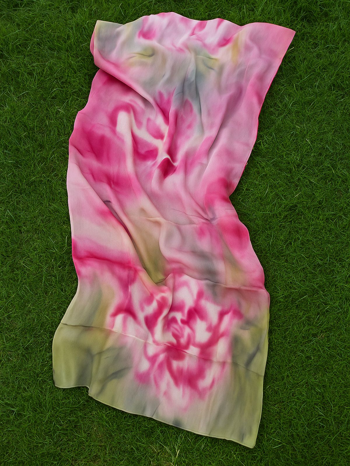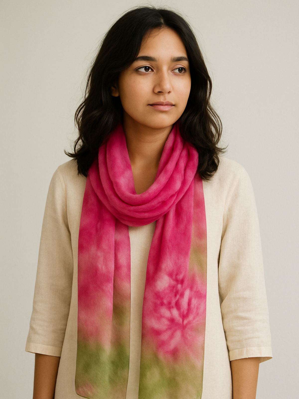 Crafted with meticulous artistry, the Aksh Rekha Stole showcases a harmonious palette of rose, white, and leaf green rendered through hand-painted techniques. This piece exemplifies traditional Indian craftsmanship, where each stroke captures the subtle elegance of natural forms, transforming textile into a wearable expression of cultural heritage and artistic refinement.