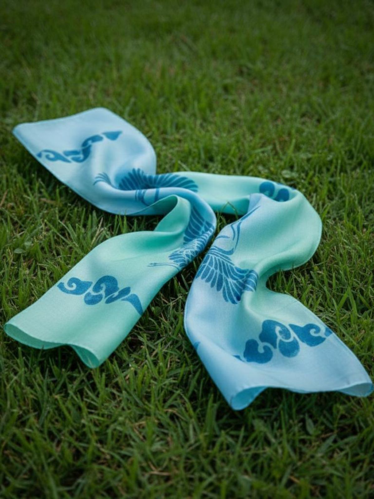 The Nil Pankh Stole takes inspiration from the serene hues of a peacock’s feather, hand-painted with delicate precision. It depicts the blue-skies and the flight of Bagula bird (Indian Heron). A reflection of Indian elegance, it carries the rhythm of nature and the grace of timeless artistry.