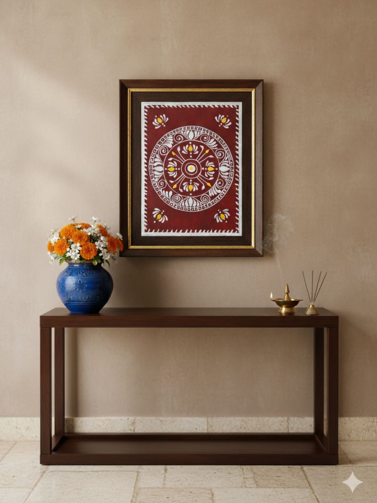 Padma Alpona is a hand-painted ode to Bengal’s sacred lotus motifs — a harmony of rhythm, devotion, and design with the Alpona art form from Bengal incorporated. Each brushstroke blooms with the quiet grace of tradition reimagined for the modern home.