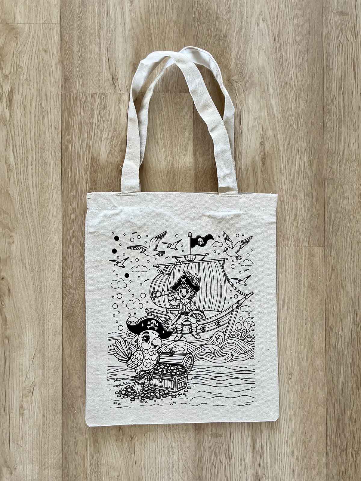 DIY Colouring Pirate and Parrot Tote Bag