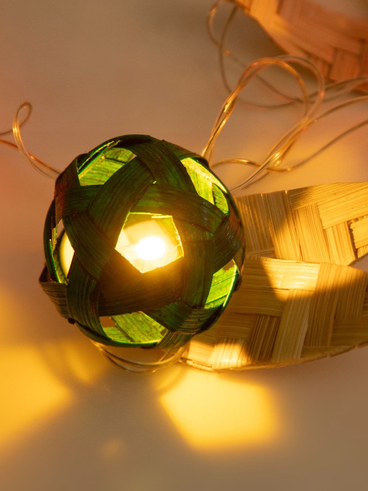 These handwoven bamboo string lights add a warm, earthy glow to any setting. Perfect for festive décor, cozy corners, or outdoor gatherings, they bring nature’s charm into your celebrations. Eco-conscious and versatile, they create magical moments filled with elegance, light, and artisanal grace.