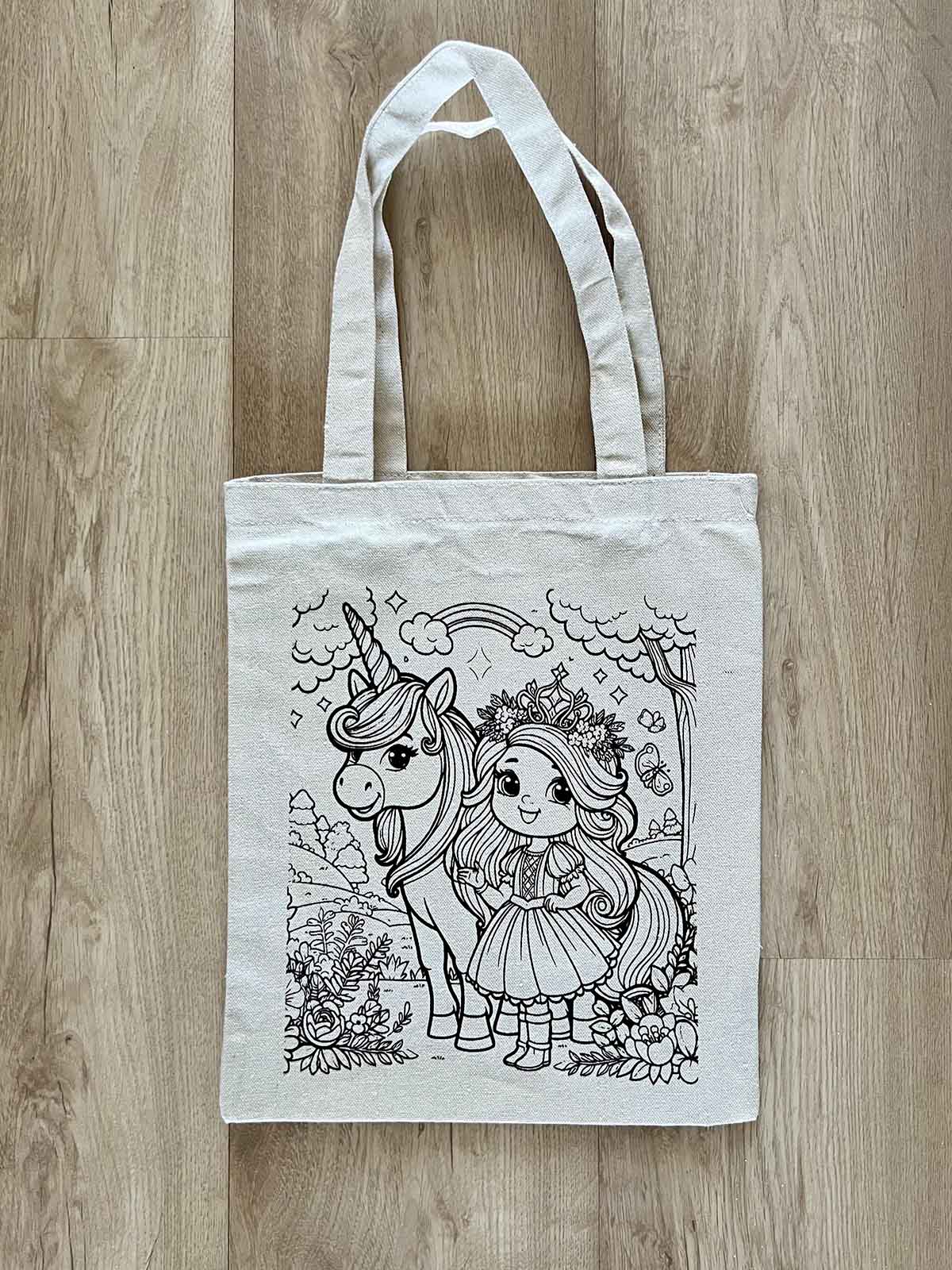 DIY Colouring Little Princess and Unicorn Tote Bag