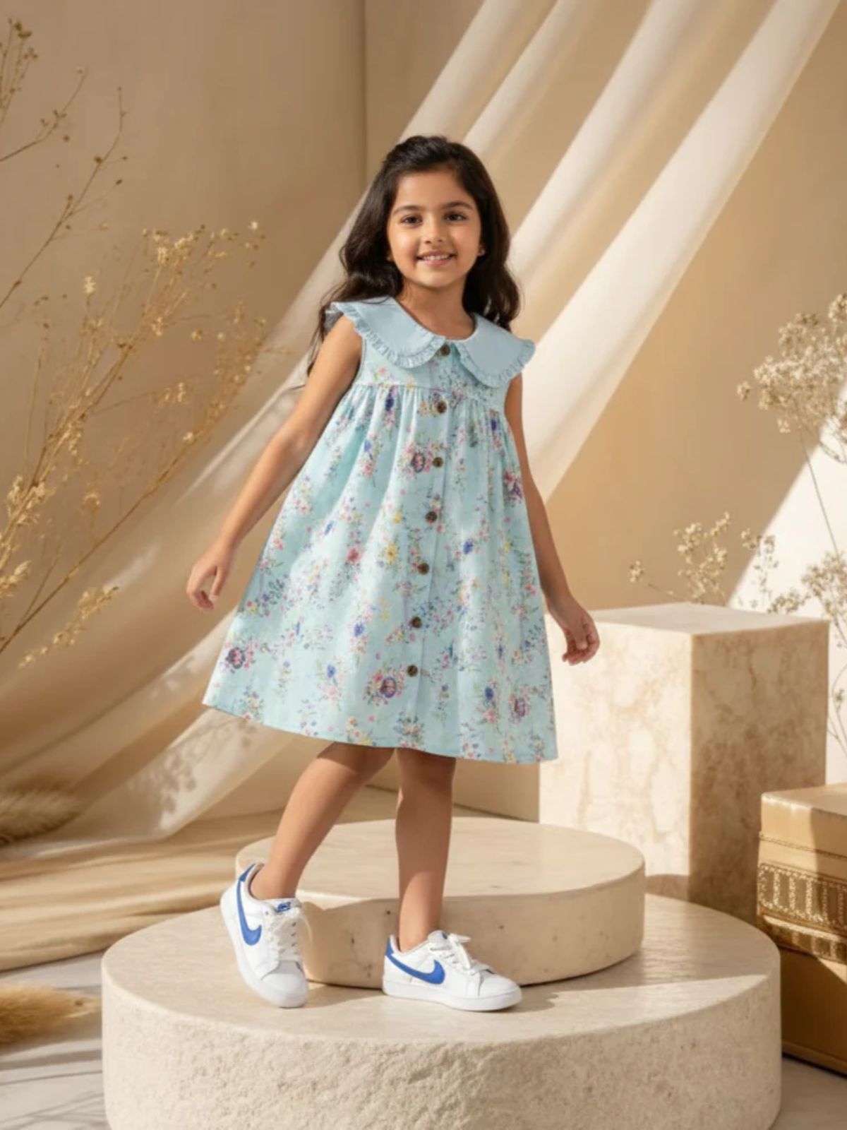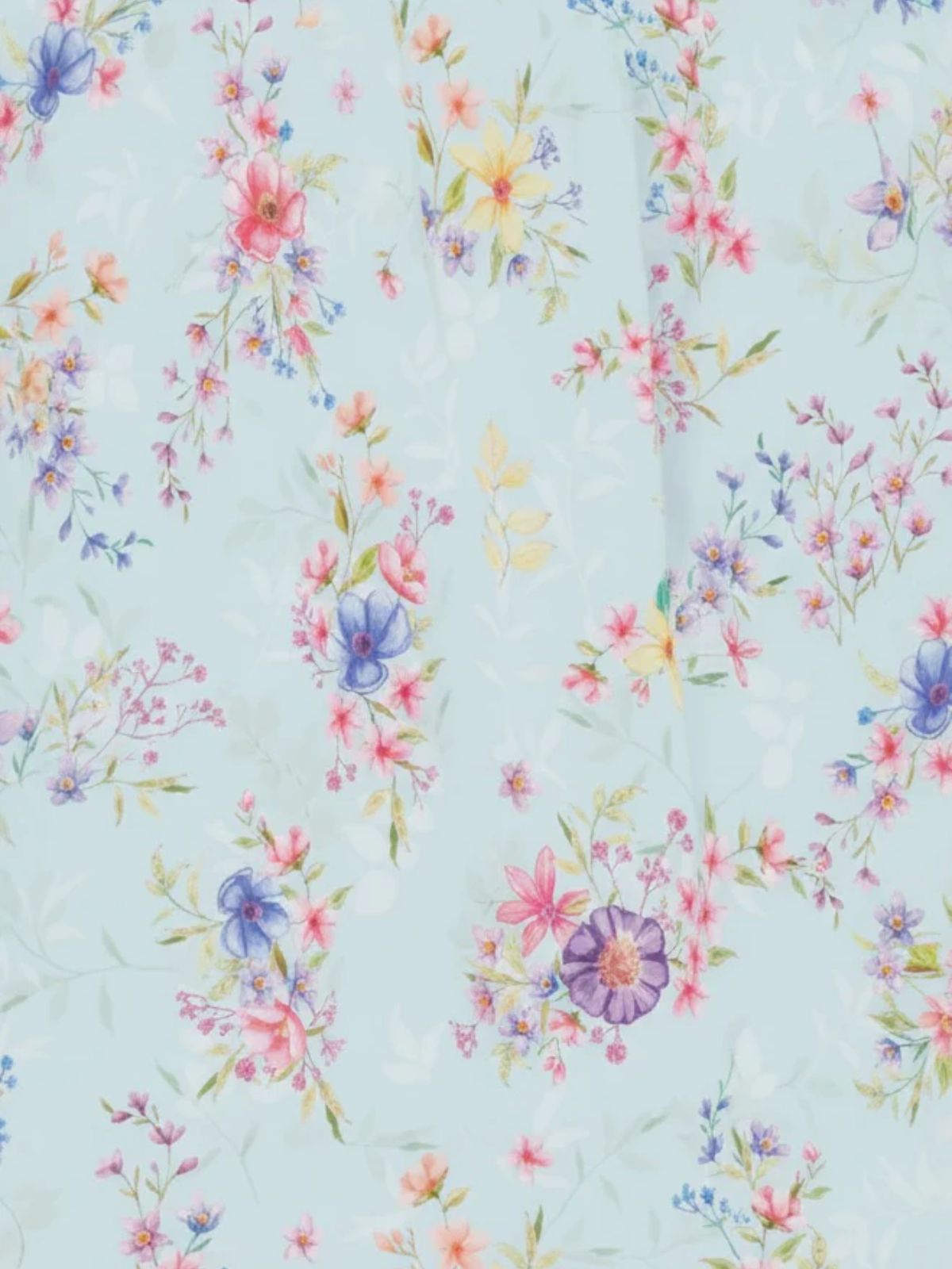 Here’s exactly how this dress was crafted. First, talented artists sketched and painted pretty wild blossoms on paper. These pictures were scanned into digital images, and then composed into a digital layout that we printed onto amazing cotton-sateen fabrics. Right from the artistry of this fabric to the charming details of its silhouette, this dress is a visual treat to the eyes.