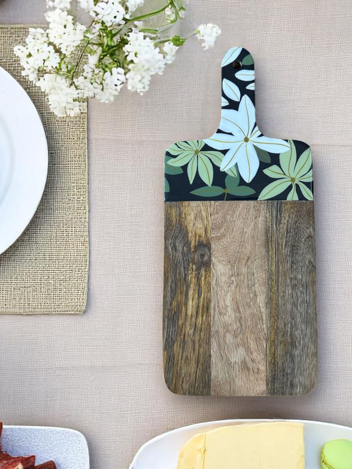Crafted for cheese lovers, this wooden board is perfect for slicing and serving. Its elegant grain and sturdy build make it ideal for both prep and presentation.
