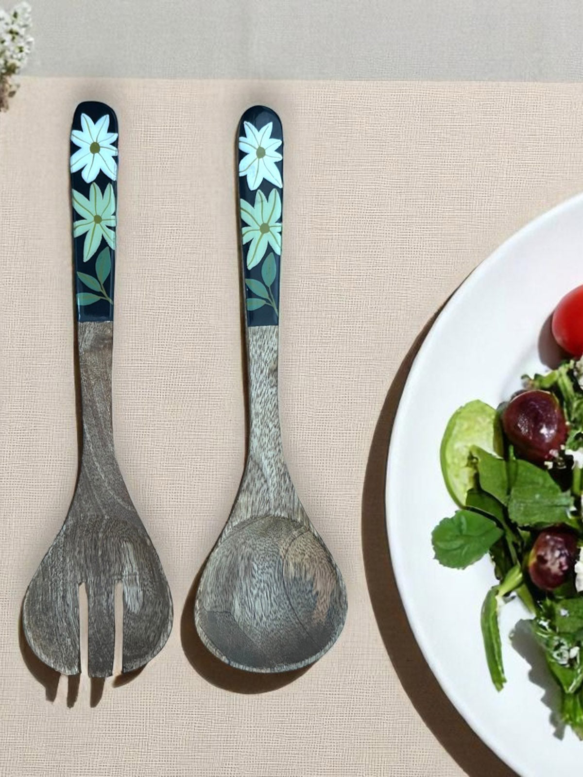 Handcrafted from natural wood, this elegant duo is perfect for tossing and serving salads. Their smooth finish and ergonomic design add a rustic charm to your dining experience.