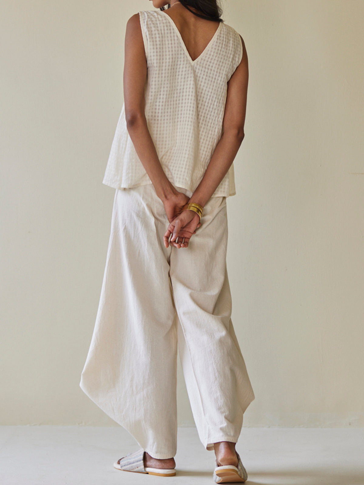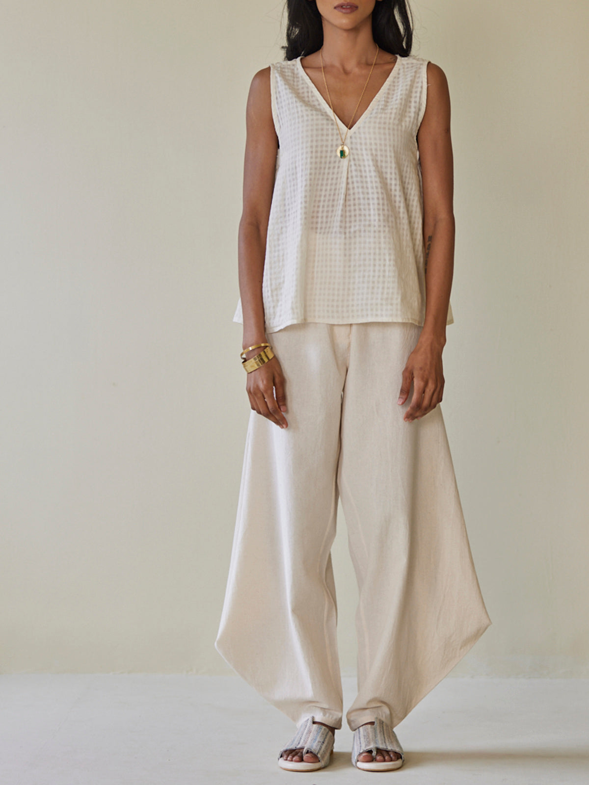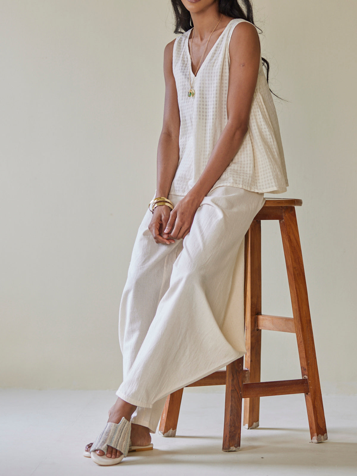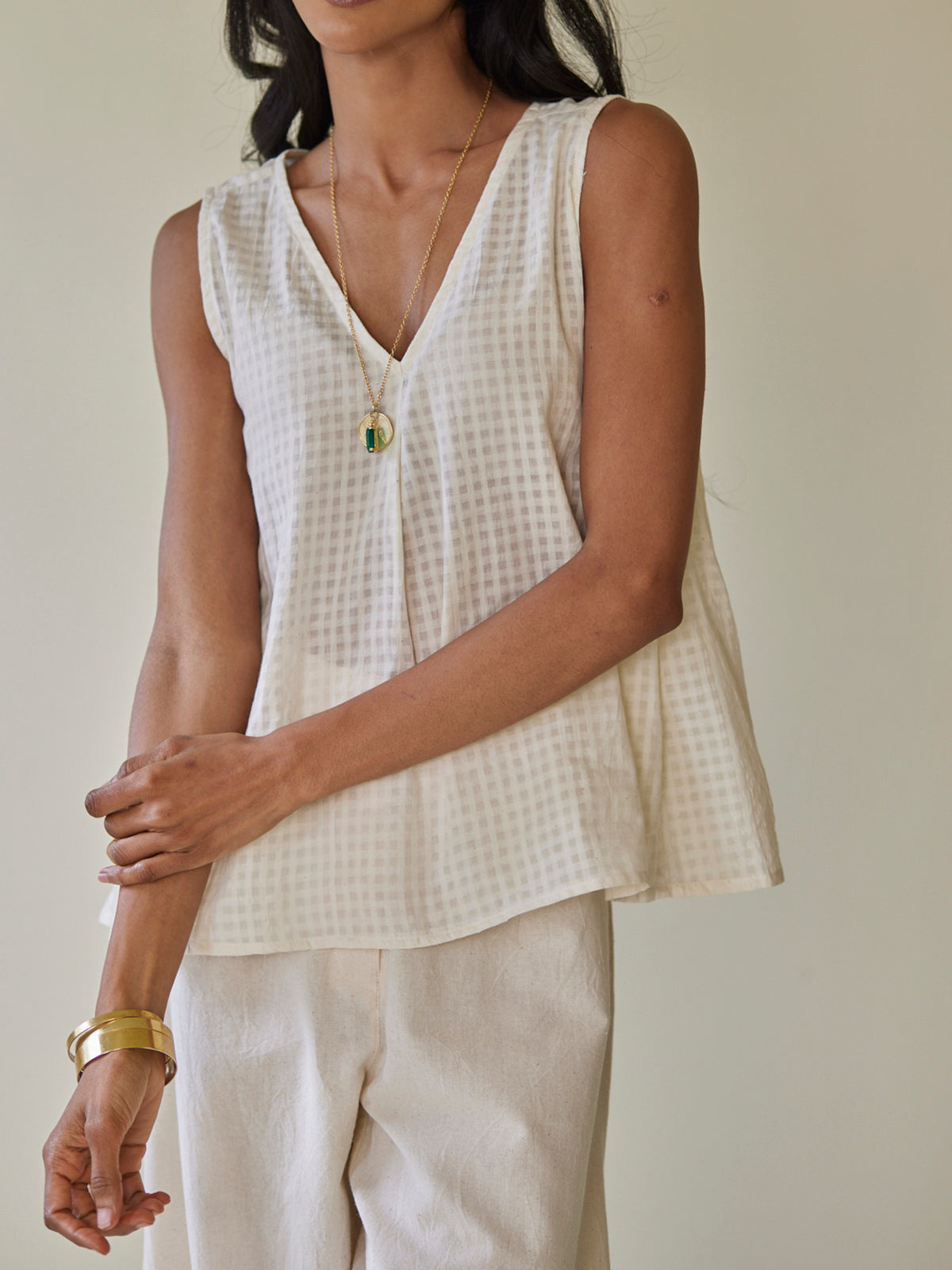 Try the Kite top for effortless summer style. This handwoven self check cotton fabric top is airy and breathable, with cut sleeves and armhole elastic for an instantly flattering A-line silhouette. Perfect for staying comfortably cool in the summer heat.