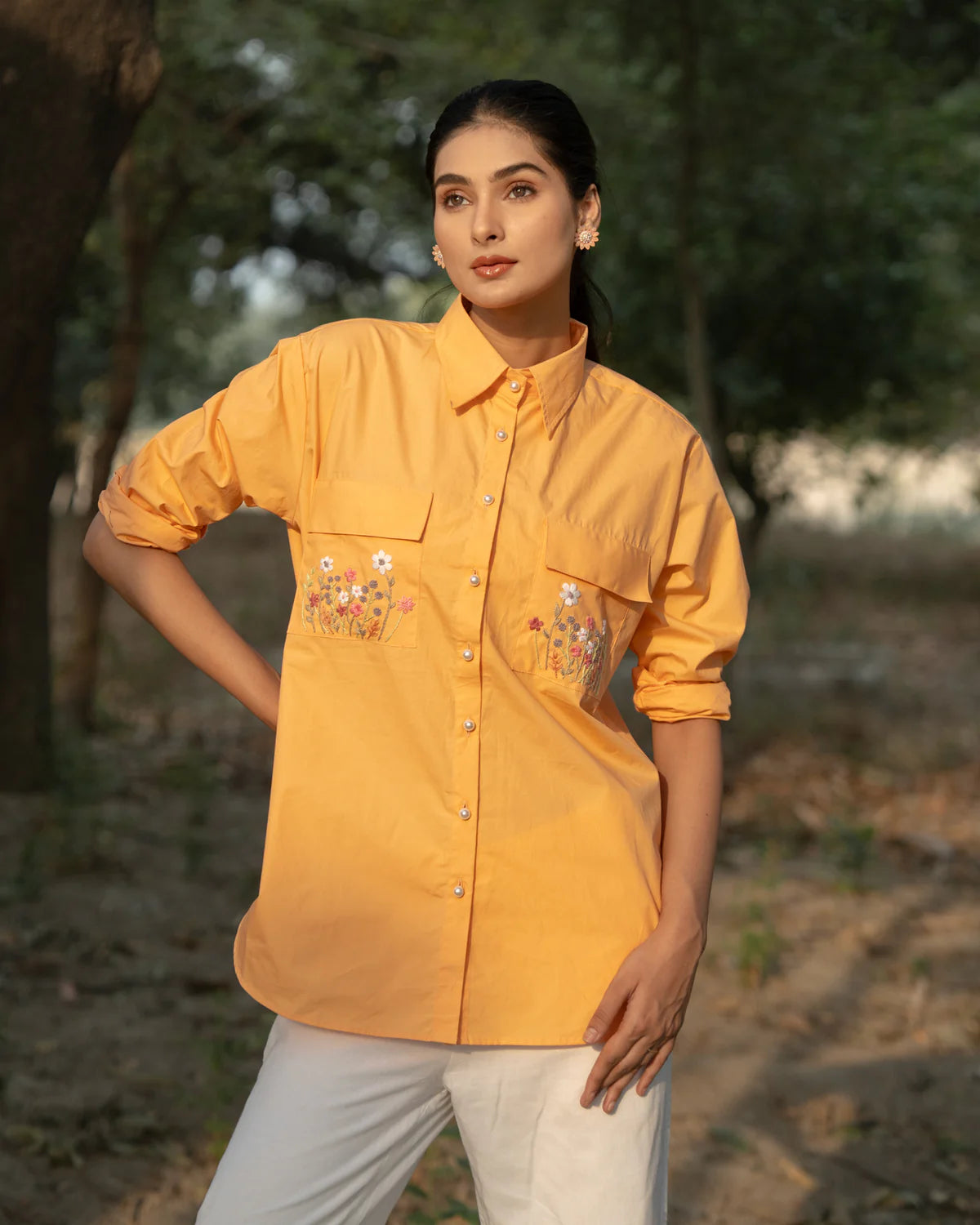 She is the perfect combination of style and comfort. With its relaxed fit and soft cotton material, it guarantees a comfortable wear. The intricate embroidery on the pockets adds a touch of elegance, making it ideal for both smart and casual occasions.