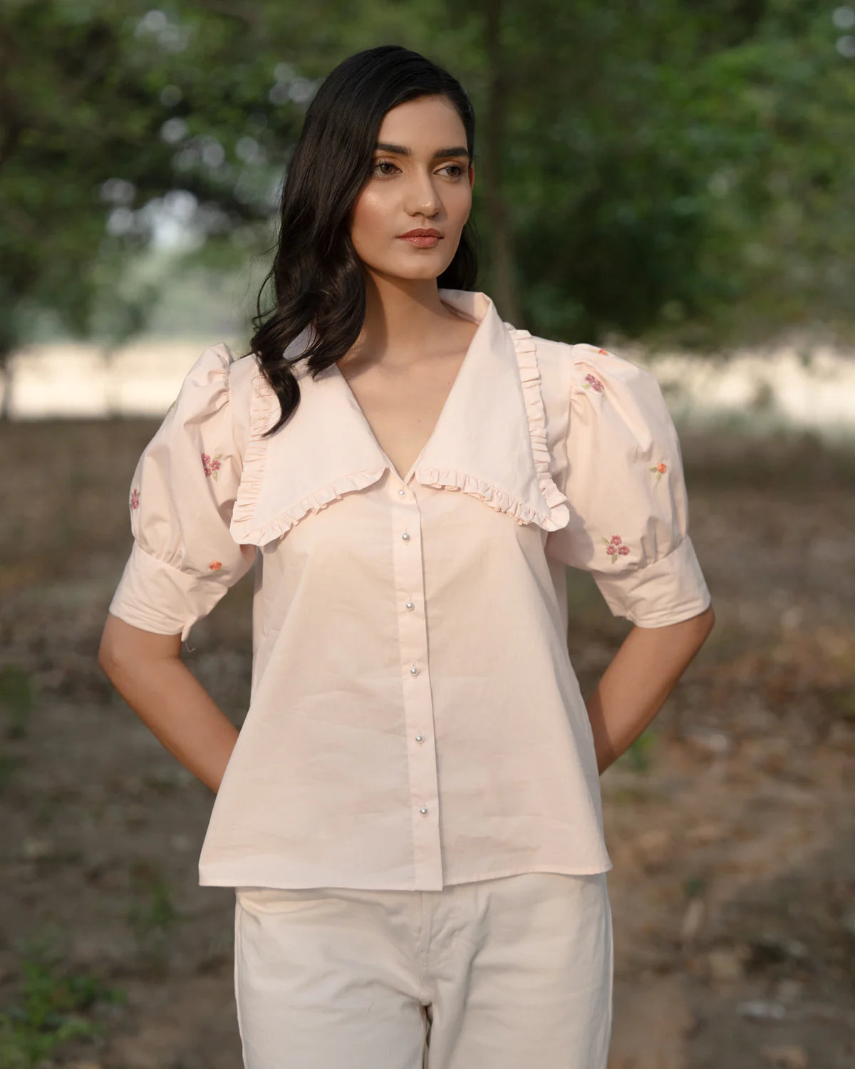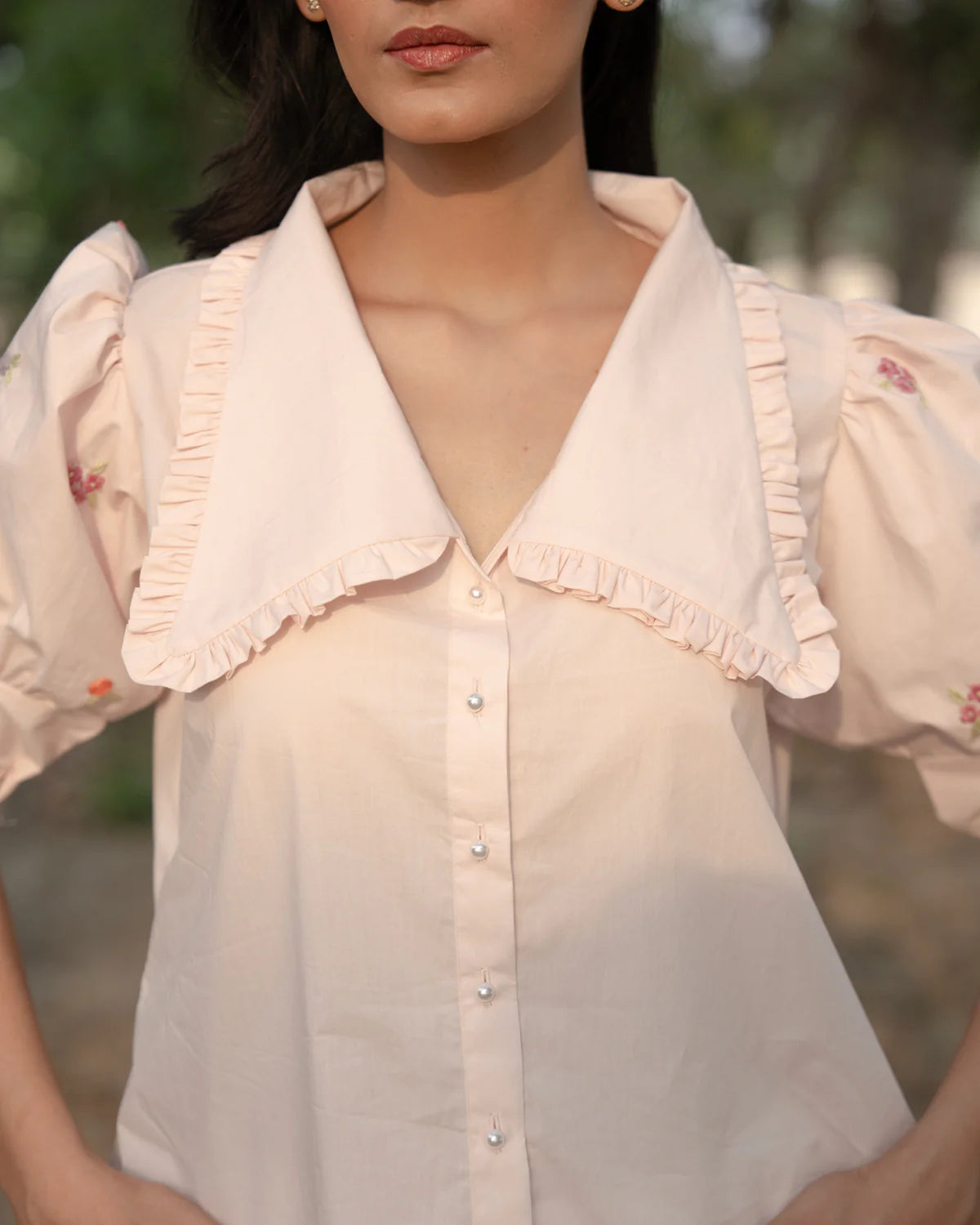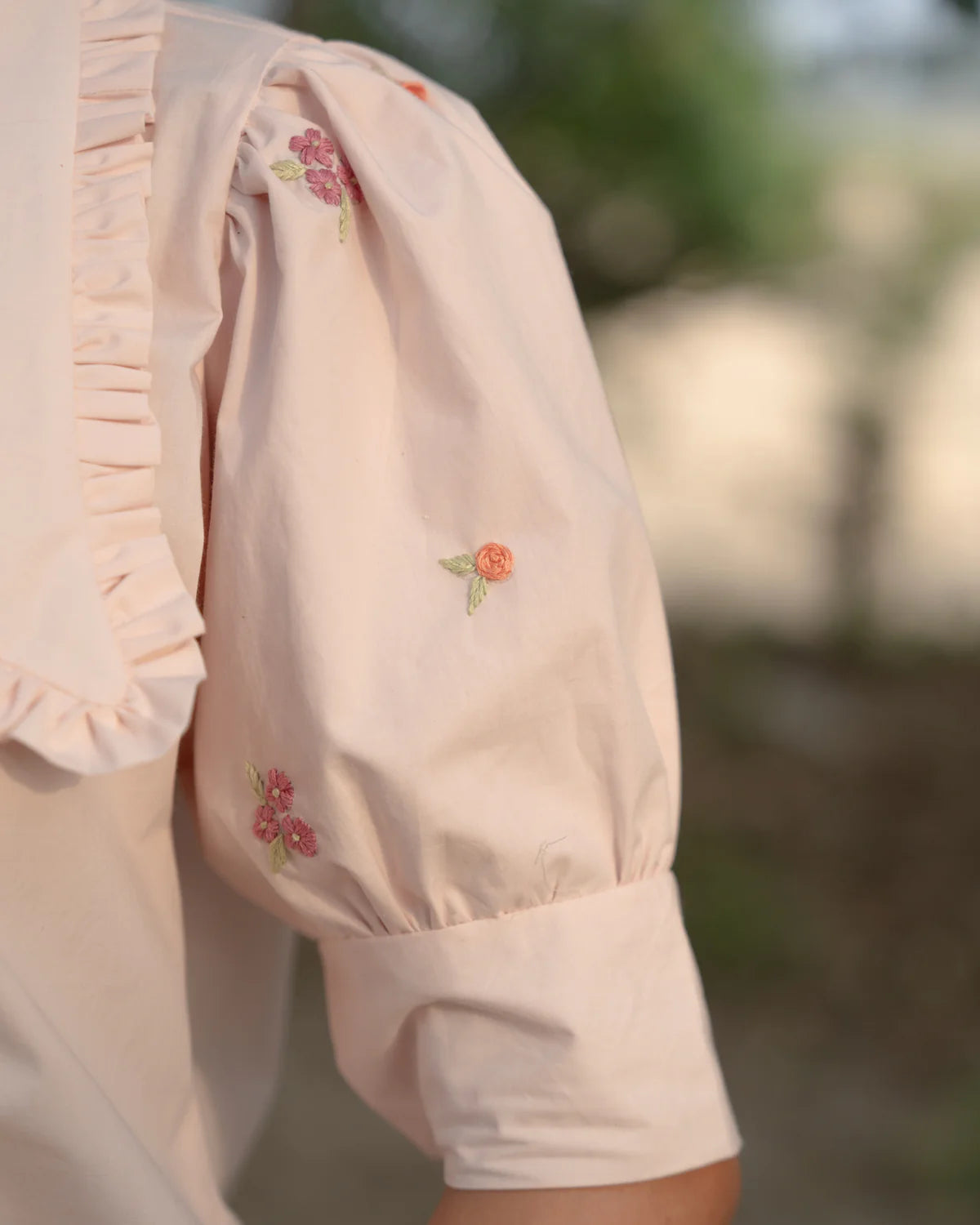 Expertly crafted for the summer season, she offers a stylish and comfortable option for your wardrobe. Her short sleeves and light fabric make it ideal for casual wear, while delicate flower embroidery adds a touch of elegance.
