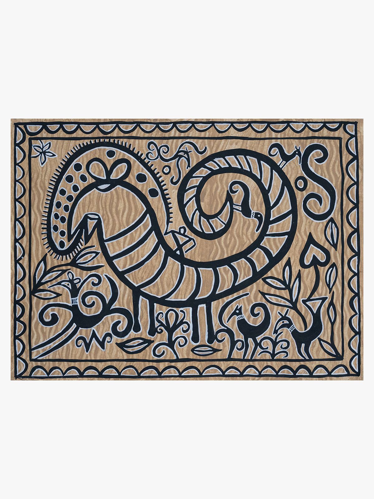 Created using natural soil-based colors like red and yellow ochre, white clay, and black manganese, the artwork is traditionally painted directly on mud surfaces. This piece, made on handmade paper with a mud base, features intricate depictions of animals, plants, and symbolic geometric patterns, reflecting themes of fertility, prosperity, and a profound connection to nature. A timeless tribute to indigenous artistry, it brings warmth and cultural depth to any space.