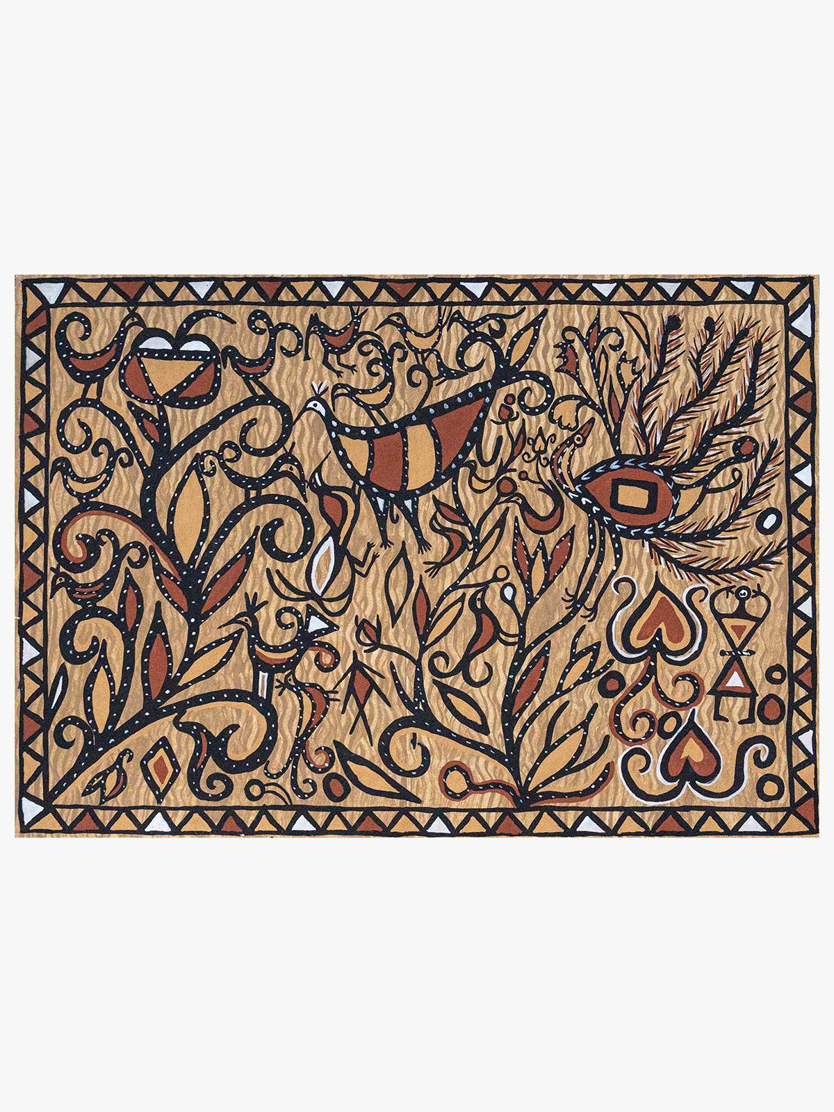 Created using natural soil-based colors like red and yellow ochre, white clay, and black manganese, the artwork is traditionally painted directly on mud surfaces. This piece, made on handmade paper with a mud base, features intricate depictions of animals, plants, and symbolic geometric patterns, reflecting themes of fertility, prosperity, and a profound connection to nature. A timeless tribute to indigenous artistry, it brings warmth and cultural depth to any space.