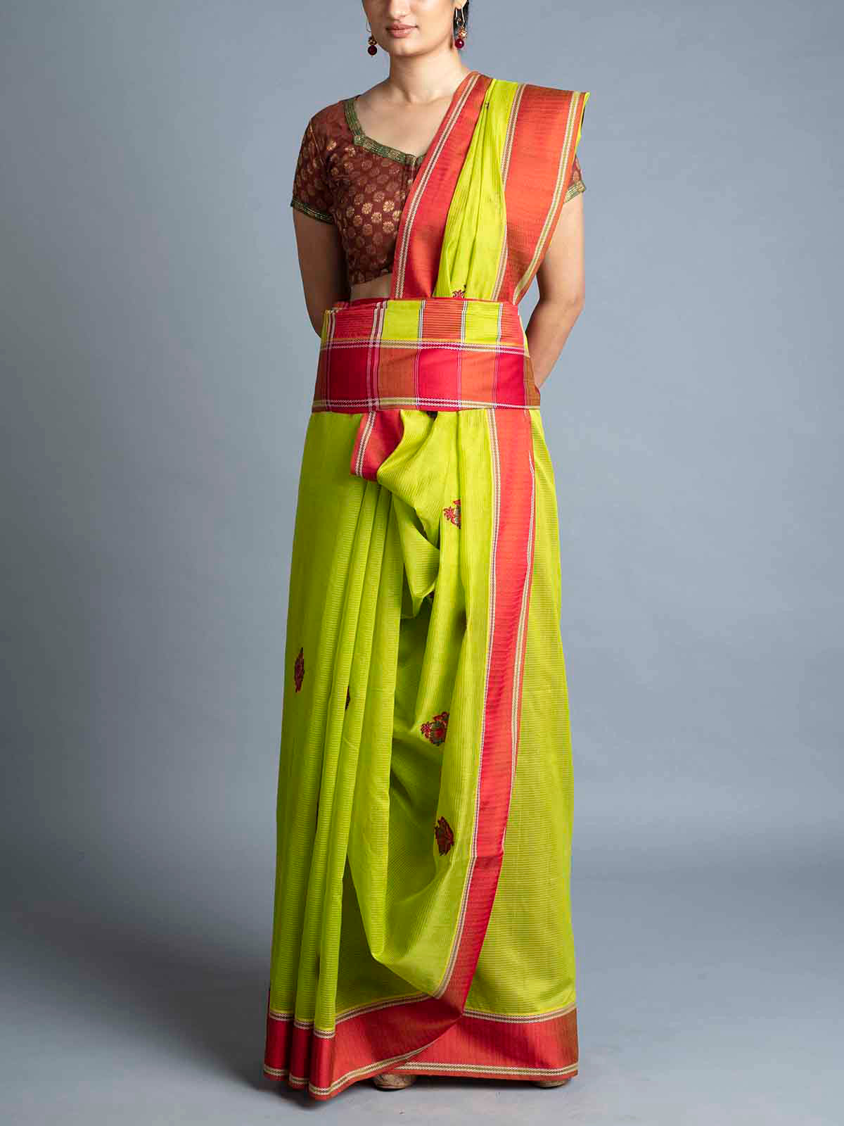 Mor Booti Maheshwari Saree With Blouse Piece