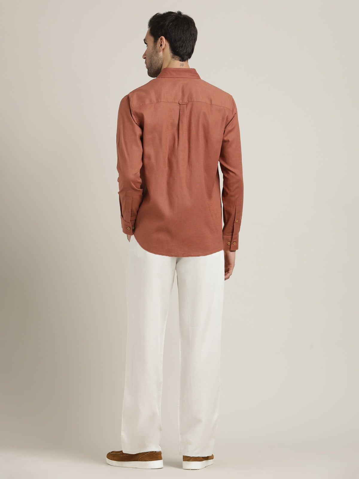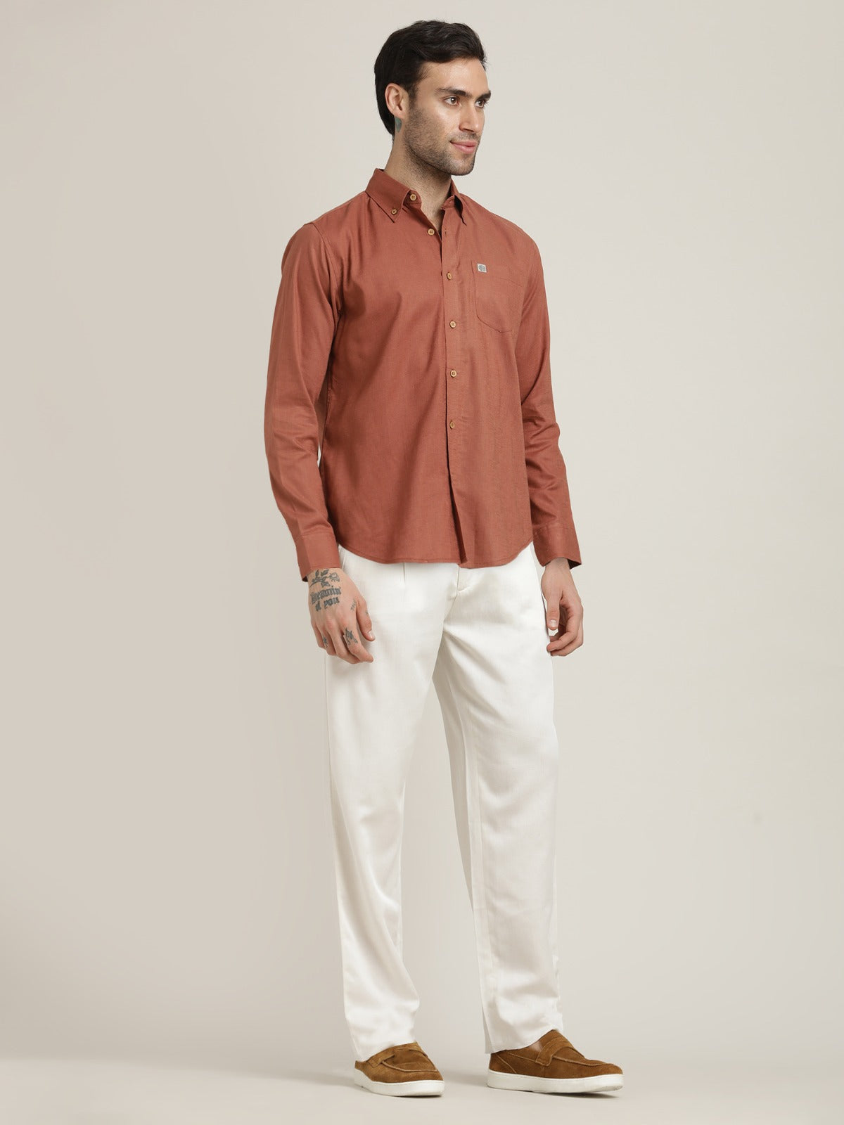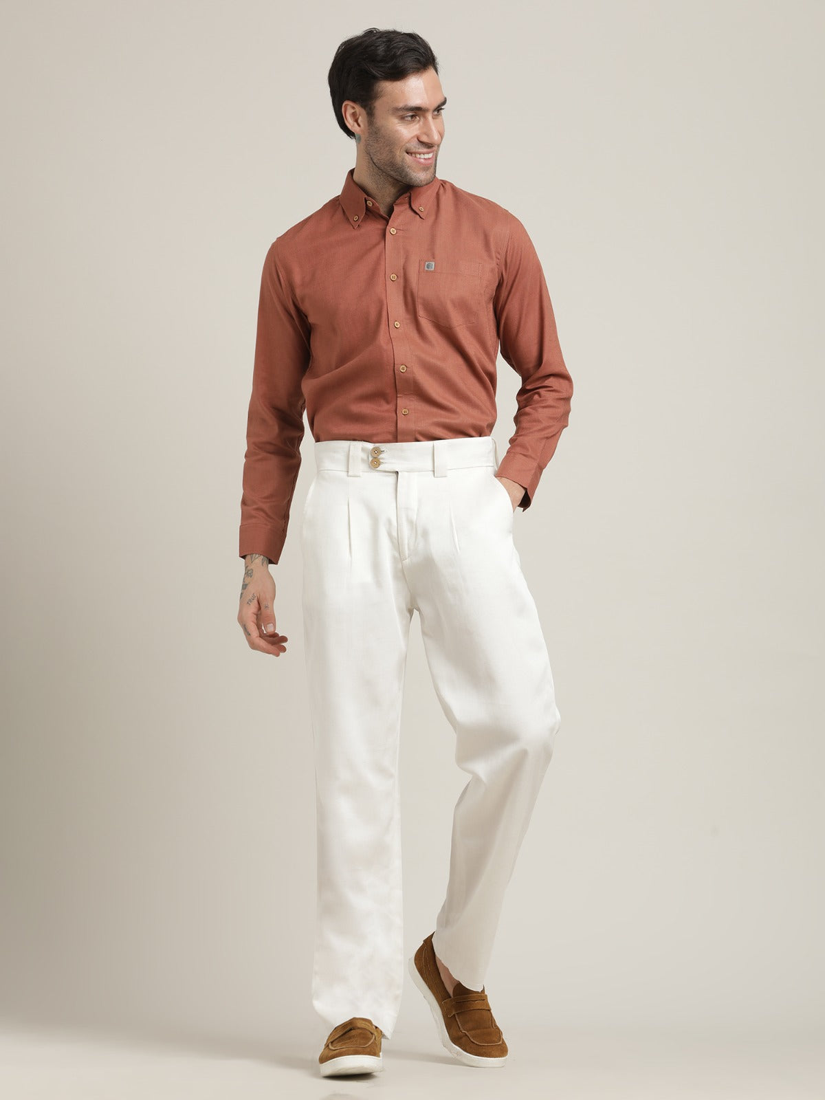 Button-Down Orange Shirt Relaxed Fit Formal Shirt with Cream Pant Co-ord Set