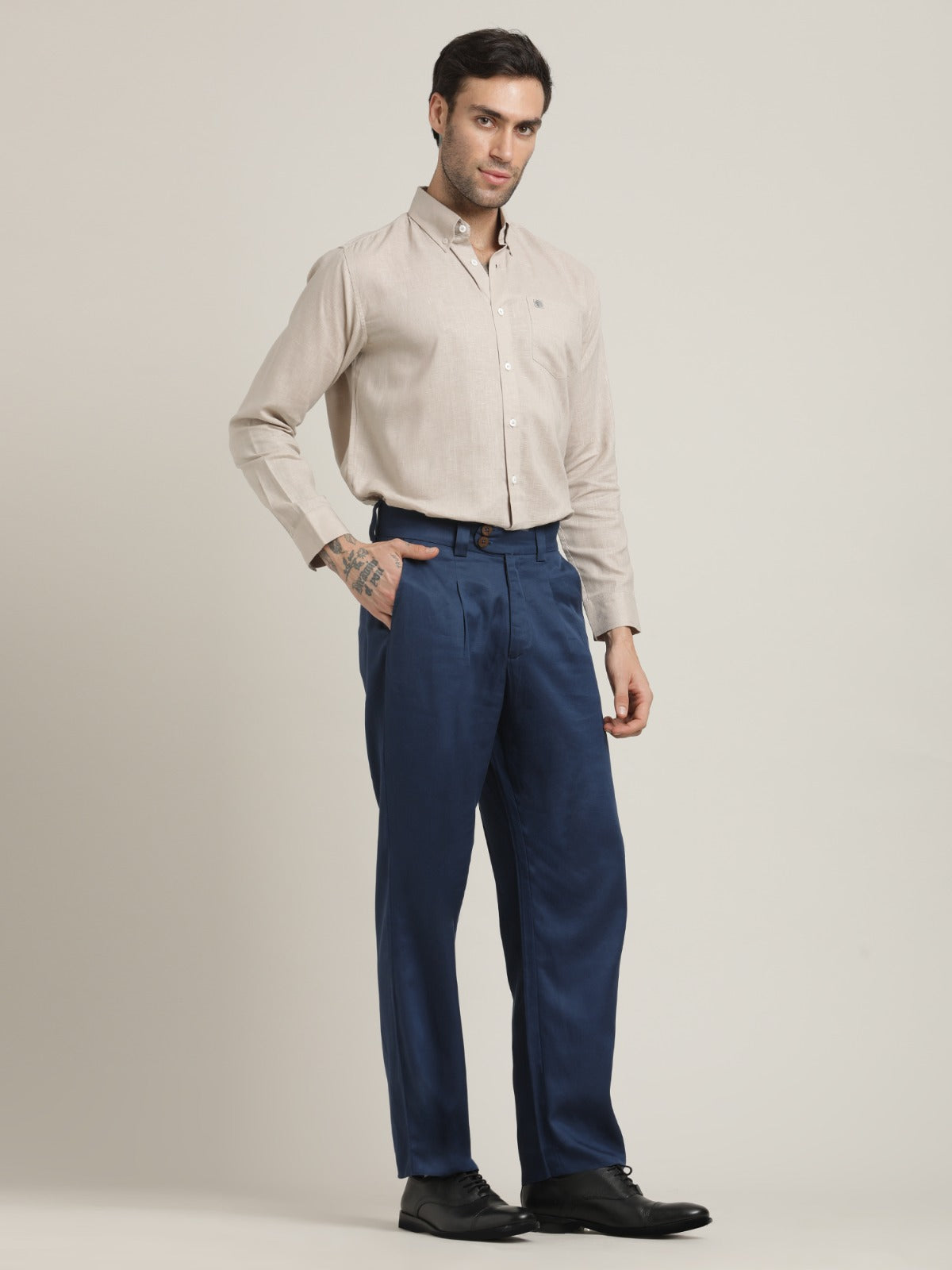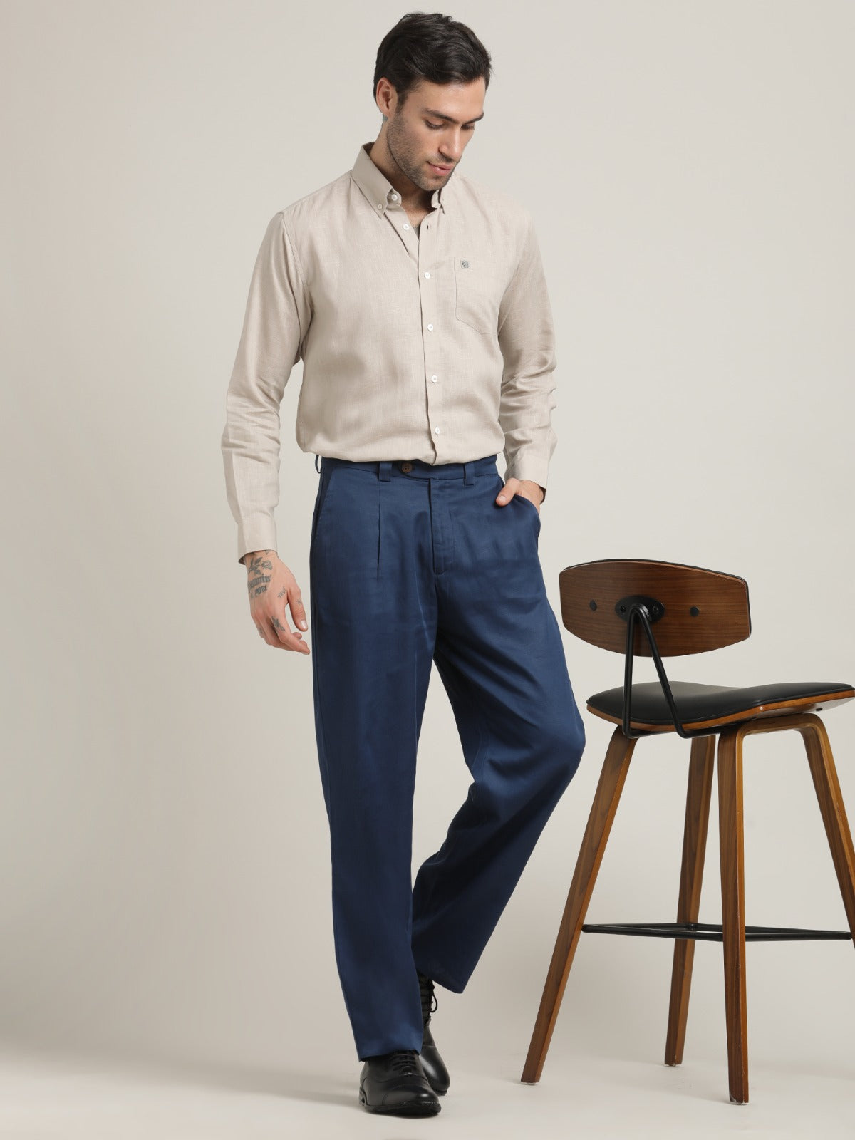 Grey Relaxed Button-Down Collar Formal Shirt with Navy Chinos Set