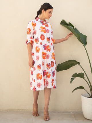 Rose Print Shirt Dress