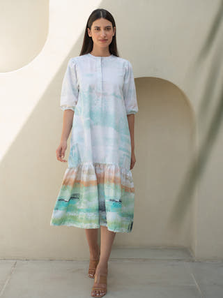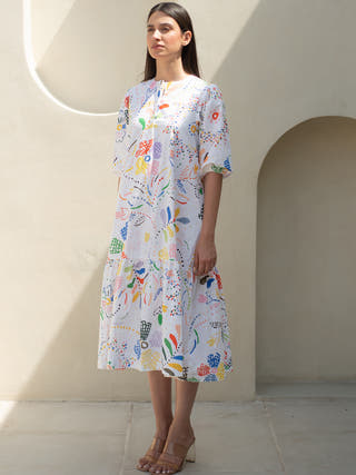 Multicolour Abstract Print Cuban Collar Dress