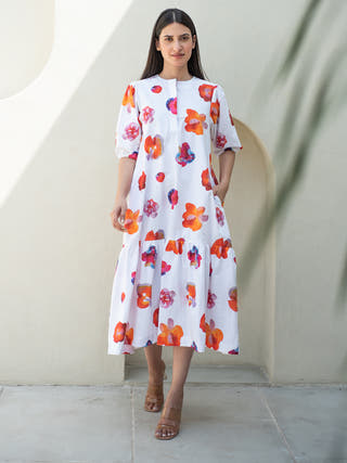 Intricate Print Bottom Flare Dress