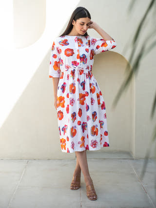 Rose Print Elasticated Waist Dress