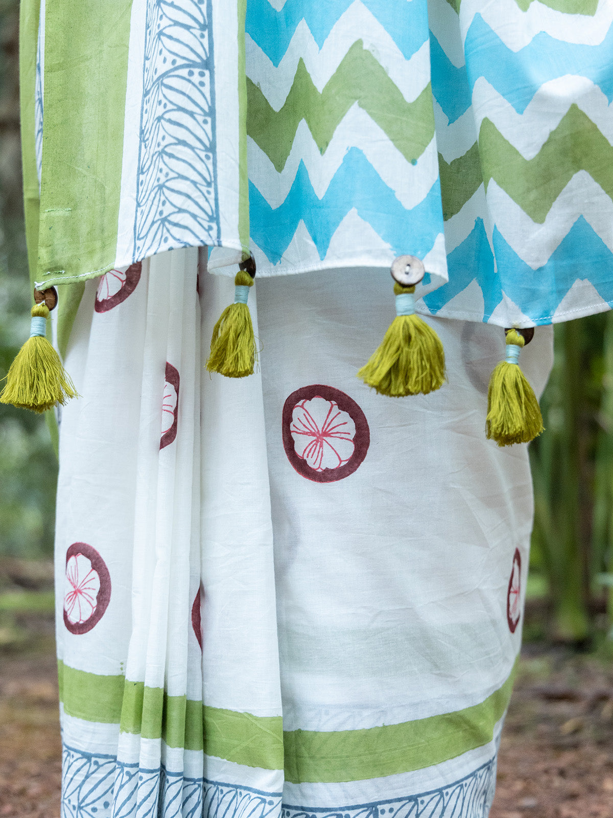 Indulge in the flavors of Kokum with this Hand Block Printed Kokum Mul Cotton Saree in pure white. Inspired by its sweet-sour essence, this saree is crafted from fine Chanderi silk and lightweight mul cotton. Hand-dyed and block printed by skilled artisans, preserving 100% original hand printing techniques.