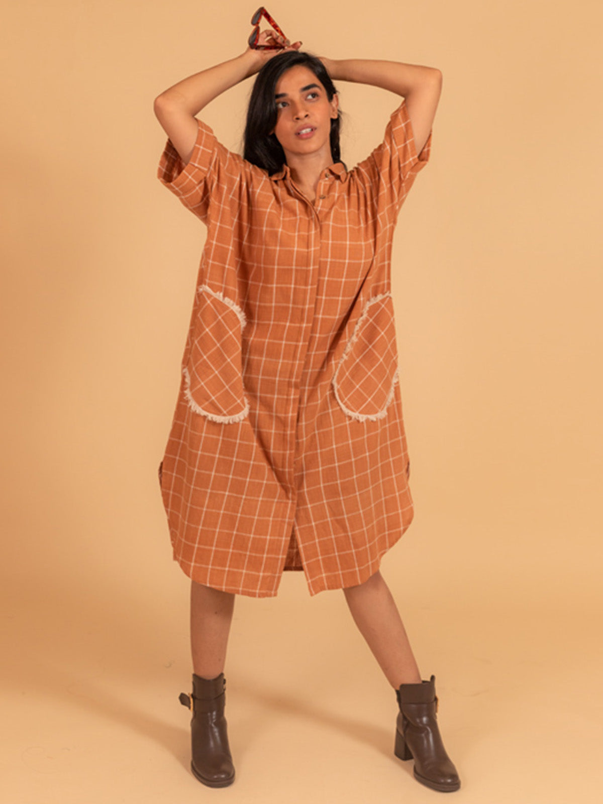 Moral Fibre Beach Dress from Shapes Collection features frayed trim patch pockets shirt dress with Apple Shape hem & relaxed fit sleeves. The easy breezy shirt dress can be worn with cigratte pants or as an over shirt
