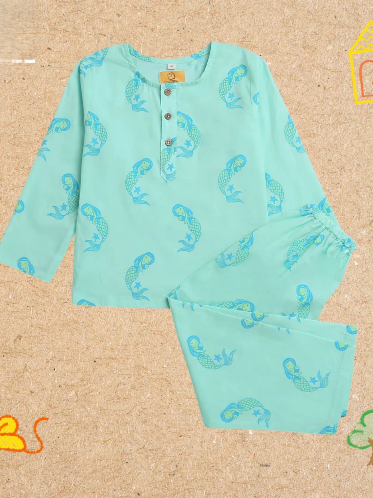 Adella The Mermaid Unisex Nightdress transforms bedtime into an underwater adventure. Crafted from 100% soft cotton, this hand screen-printed sleepwear features enchanting mermaid designs that spark imagination while providing exceptional comfort. The lightweight, breathable fabric is gentle on delicate skin, making it ideal for both restful nights and daytime play. Each piece is uniquely artisan-crafted, with customizable sizing options to accommodate growth. Machine washable in cold water and designed to maintain softness and color with proper care, this ocean-inspired nightdress combines quality craftsmanship with whimsical style for children who dream of the sea.
