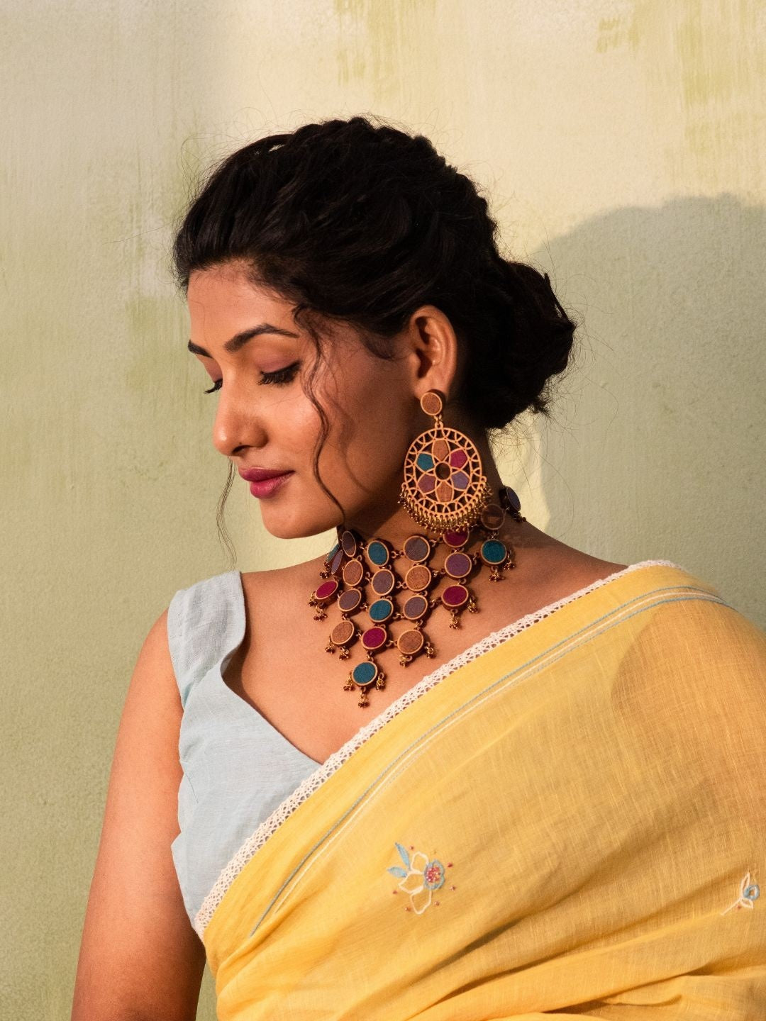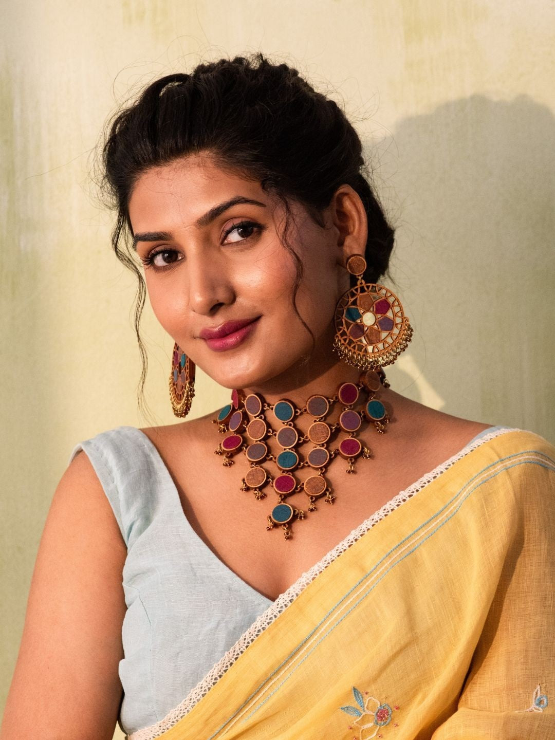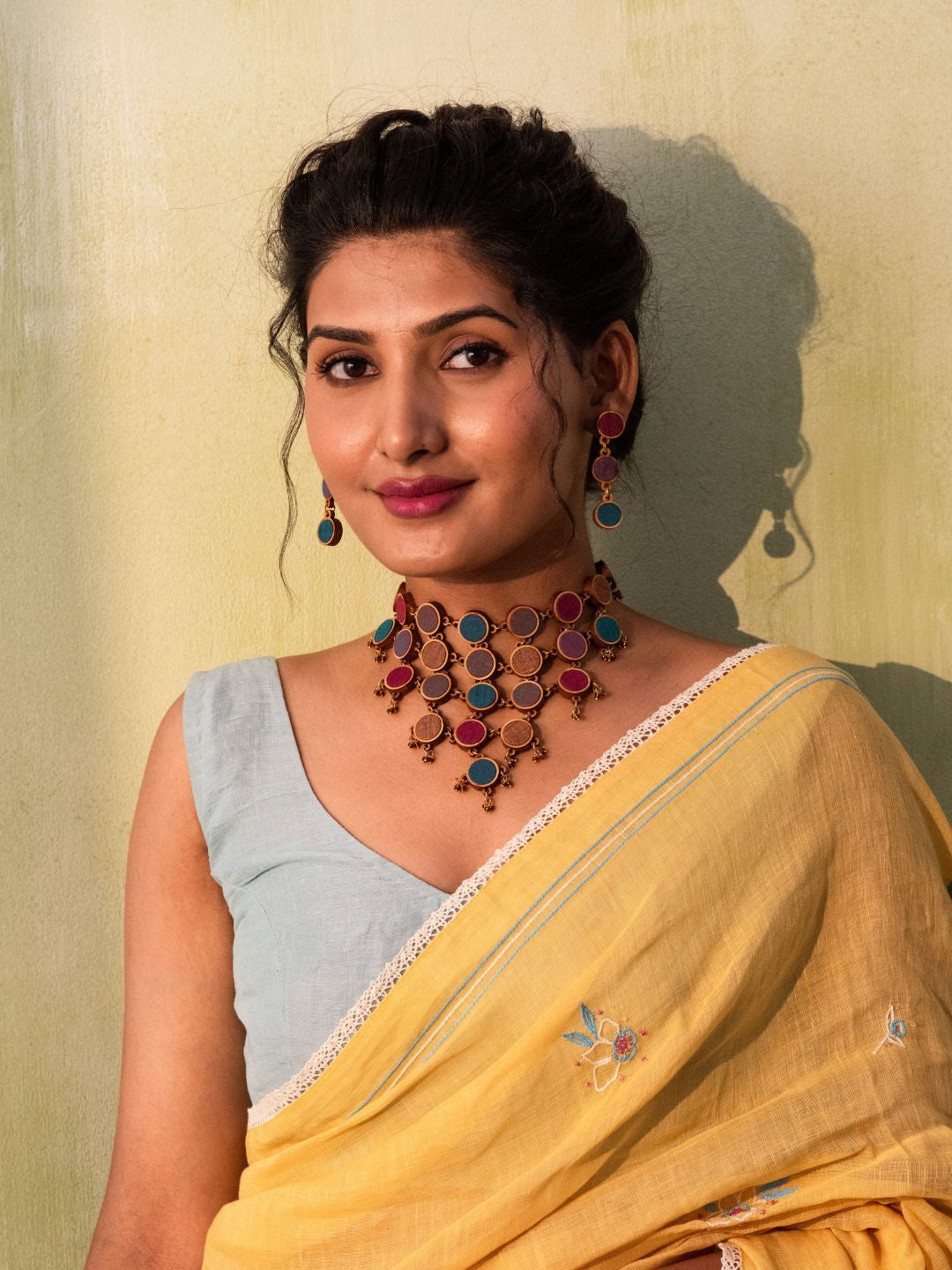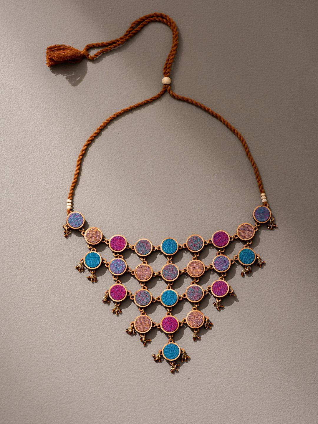 Discover the vibrant Violet Wood Multicolored Statement Necklace from the Repurposed Fabric and Wood Collection. Expertly crafted by Indian artisans, this collection champions sustainability by transforming garment waste into exquisite jewelry. Embrace eco-conscious fashion and support a greener world with every stunning piece.