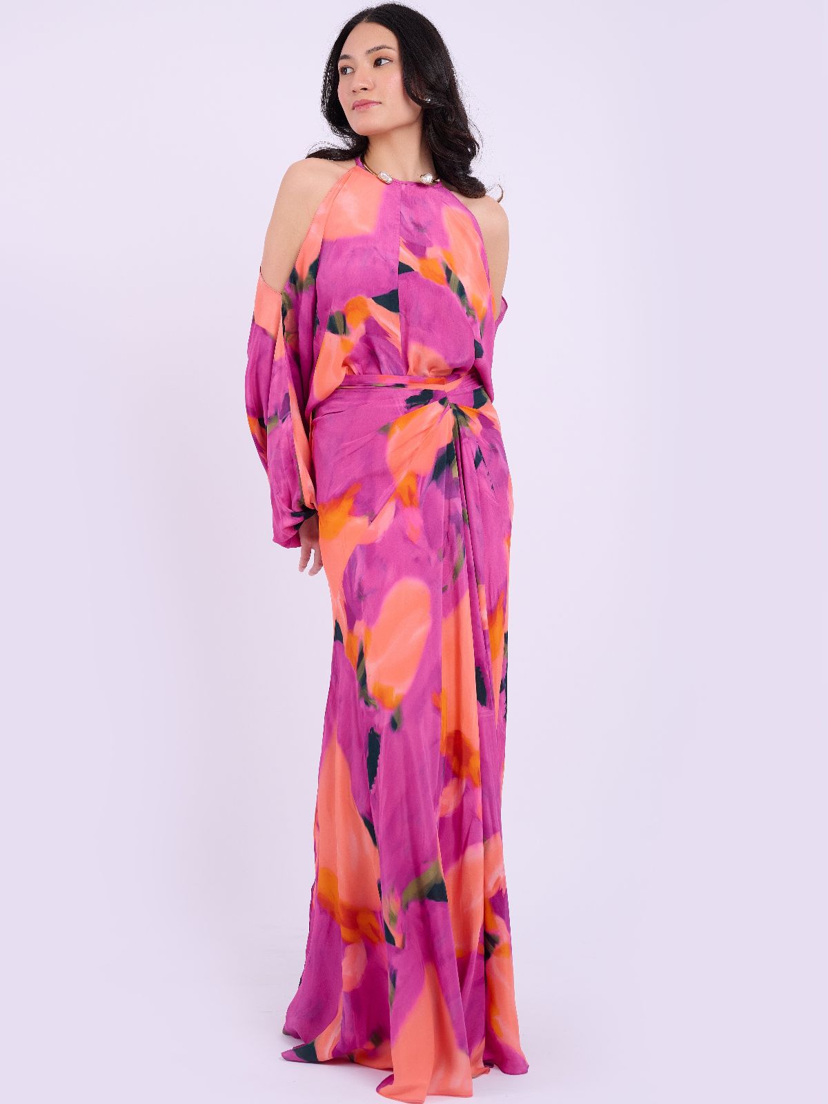 Striking florals meet sophisticated tailoring in this crepe ensemble. The Elin Set captivates with its commanding shoulder cut-outs and graceful fabric flow, delivering refined elegance for your most memorable occasions. Whether you're attending a festive celebration or an intimate evening gathering, this piece moves seamlessly between moments, offering both visual impact and wearable comfort through its thoughtfully designed silhouette.