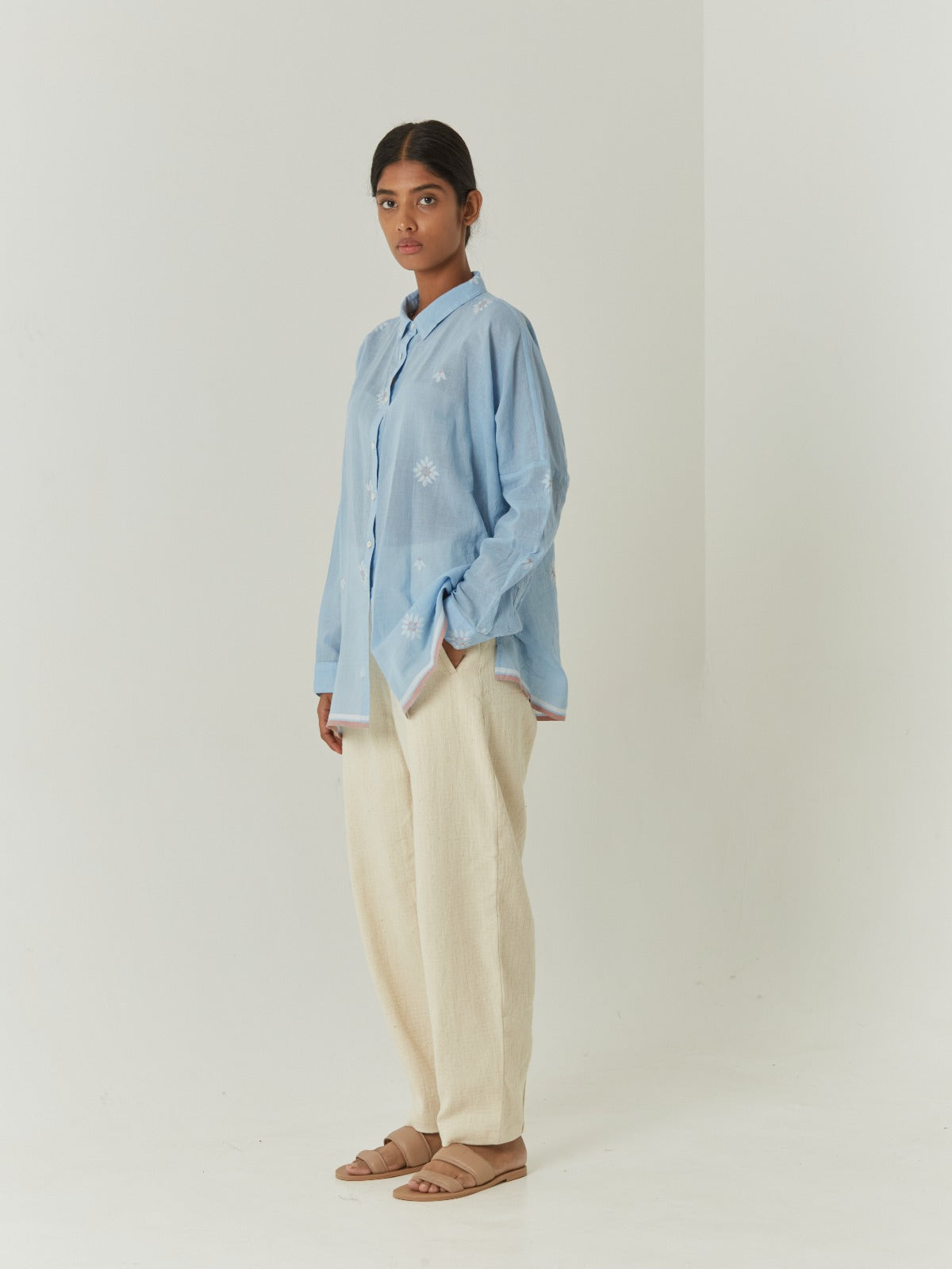 Experience unparalleled comfort with the Skye shirt, meticulously crafted from 100% handwoven cotton. Its relaxed silhouette, complemented by subtle contrast selvedge details at the hem and yoke, ensures a breathable and effortlessly comfortable fit for all-day wear. Each Skye shirt tells a story of heritage: its unique motif is the legacy of 3rd-generation Jamdani master weavers, with every meter of fabric taking over 14 hours to create. Feel good knowing your garment is ethically produced and dyed with Azo-free dyes.