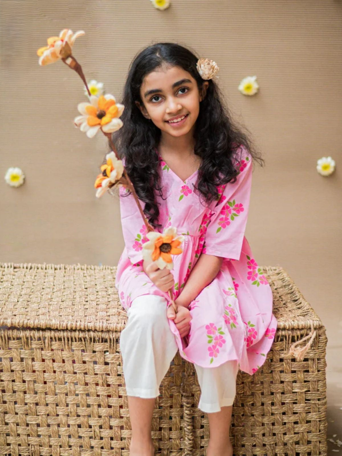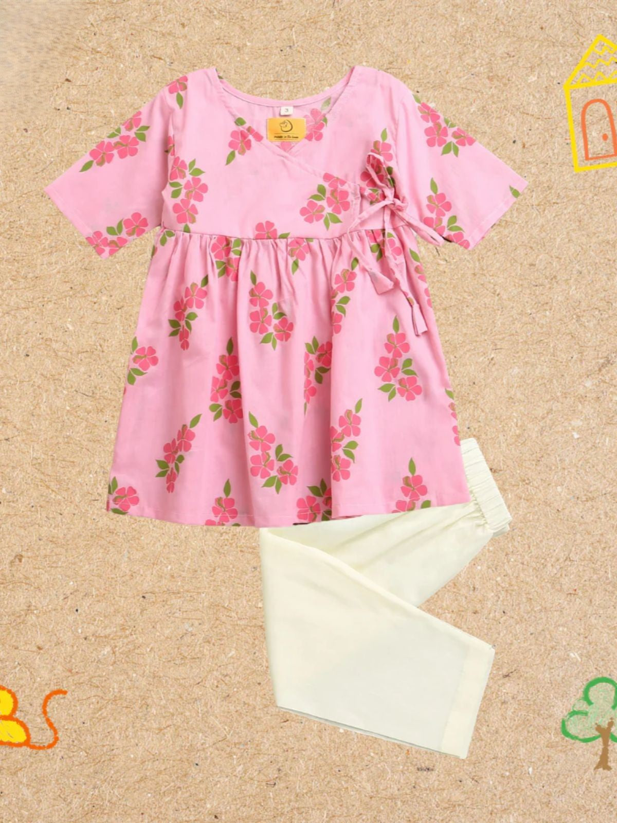 Introduce your child to timeless elegance with the Lane of Happiness Pink Girls Ethnic Wear—a thoughtfully crafted kurta pajama ensemble that marries traditional aesthetics with modern comfort. Constructed from 100% pure cotton, this set features hand screen-printed designs using chemical-free dyes, ensuring both safety and durability for sensitive skin. The coordinated beige pajamas include soft elastic waistbands for unrestricted movement during play and celebrations alike. Available across sizes 1 to 8 years, each piece showcases exclusive, artisanal prints that reflect authentic craftsmanship. The gentle hand-finishing process means minor variations enhance rather than diminish the garment's character. Ideal for daily wear and special occasions, this ethnic ensemble combines practicality with cultural charm, allowing your child to move freely while maintaining refined style.