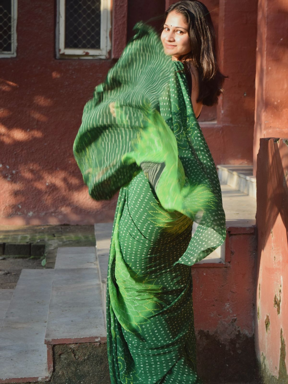 Fresh, bold, and beautifully crafted, the Zesty Whiz Green Bandhej Georgette Saree showcases intricate bandhej work on a breezy georgette fabric. The lively green shade adds a refreshing appeal, ideal for festive gatherings and cultural events. Soft, flowy, and easy to drape, this saree elevates your ethnic wardrobe with a perfect blend of grace and energy.