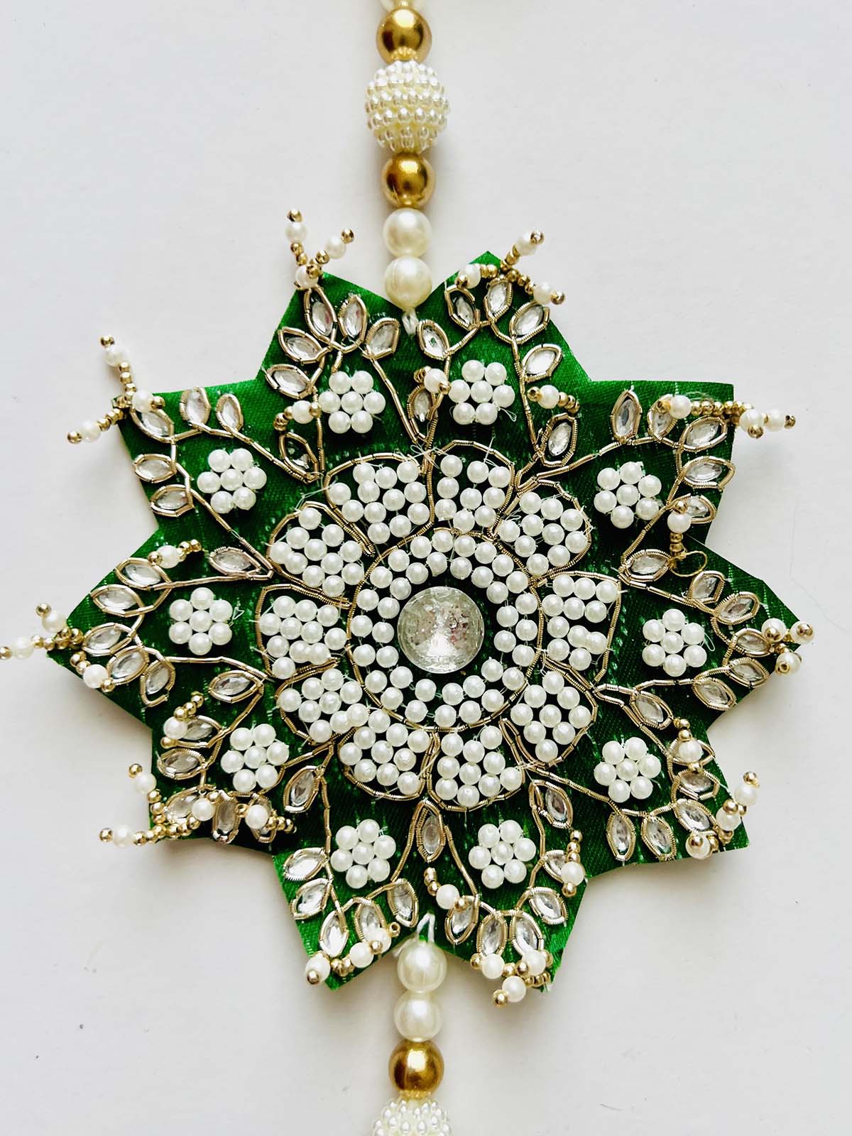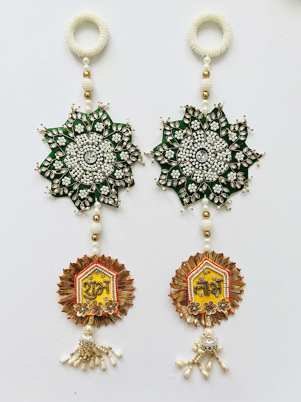 Add a festive touch to your home with these beautiful handcrafted Door Hangings! Ideal for Diwali, these vibrant decorations welcome Goddess Lakshmiji and enhance your main entrance. Crafted by skilled artisans in Rajasthan using traditional pearls and sequins, their intricate designs will liven up any space, creating a warm and cozy atmosphere.