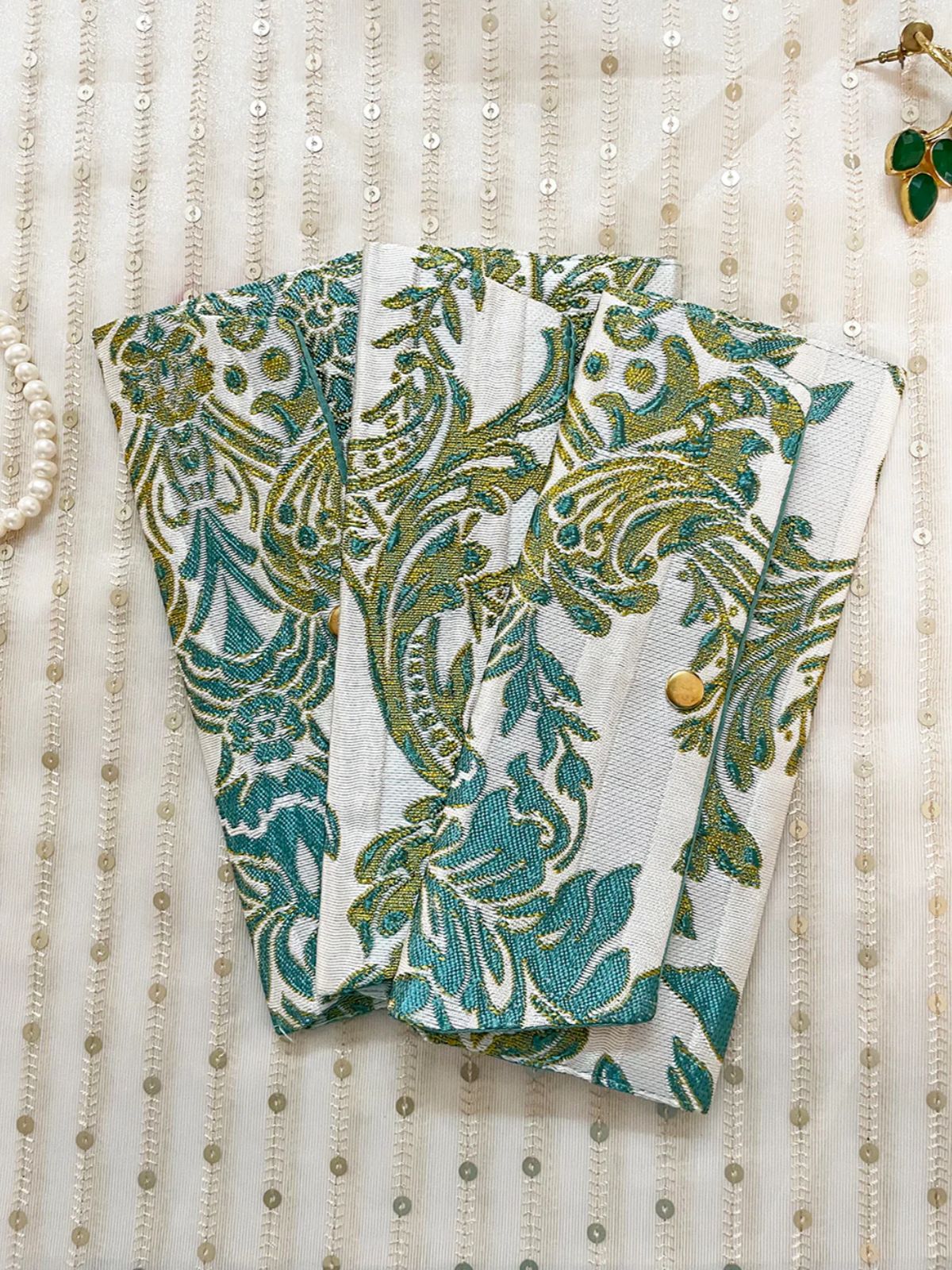 Elevate your gifting tradition with this exquisite fabric money envelope, thoughtfully crafted from upcycled materials. Featuring an elegant white base with striking blue printed accents, it seamlessly accommodates notes from Rs 500 to Rs 2000. The deep design ensures secure placement, while the foldable inner flap provides optional closure for added peace of mind. By choosing fabric over disposable paper alternatives, you're making a conscious choice toward sustainability without compromising on aesthetics or functionality. Each piece is uniquely crafted from pre-consumer fabric remnants, making every envelope truly one-of-a-kind. Perfect for festivals, celebrations, and meaningful gestures throughout the year.