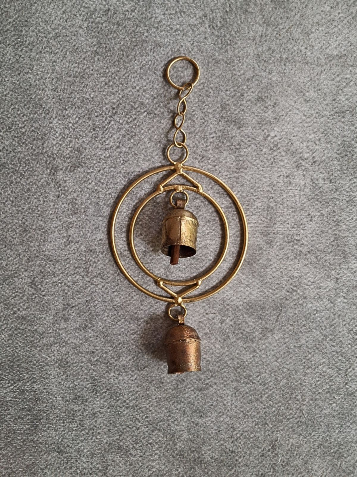This handcrafted table top set showcases traditional metalworking techniques refined over generations. Each piece begins with copper sheets that artisans meticulously cut and shape before subjecting the metal to controlled heating and hammer-forming processes. The resulting bell features an interior clapper engineered for optimal resonance, while hand-carved designs add distinctive character to every unit. A polished finish and suspended loop enable versatile display and use. The accompanying tea light holder features a precisely shaped surface that's been sanded to a smooth texture, then treated with a natural protective coating that enhances both durability and aesthetic appeal.