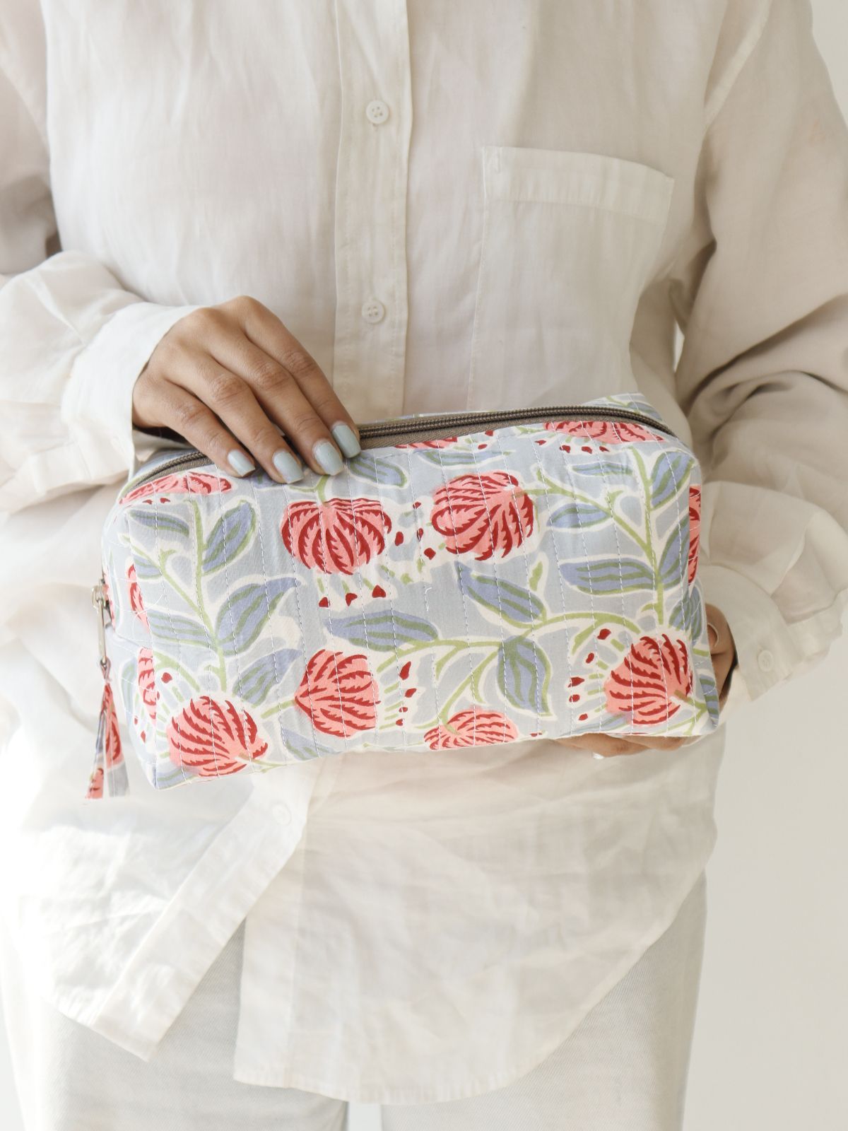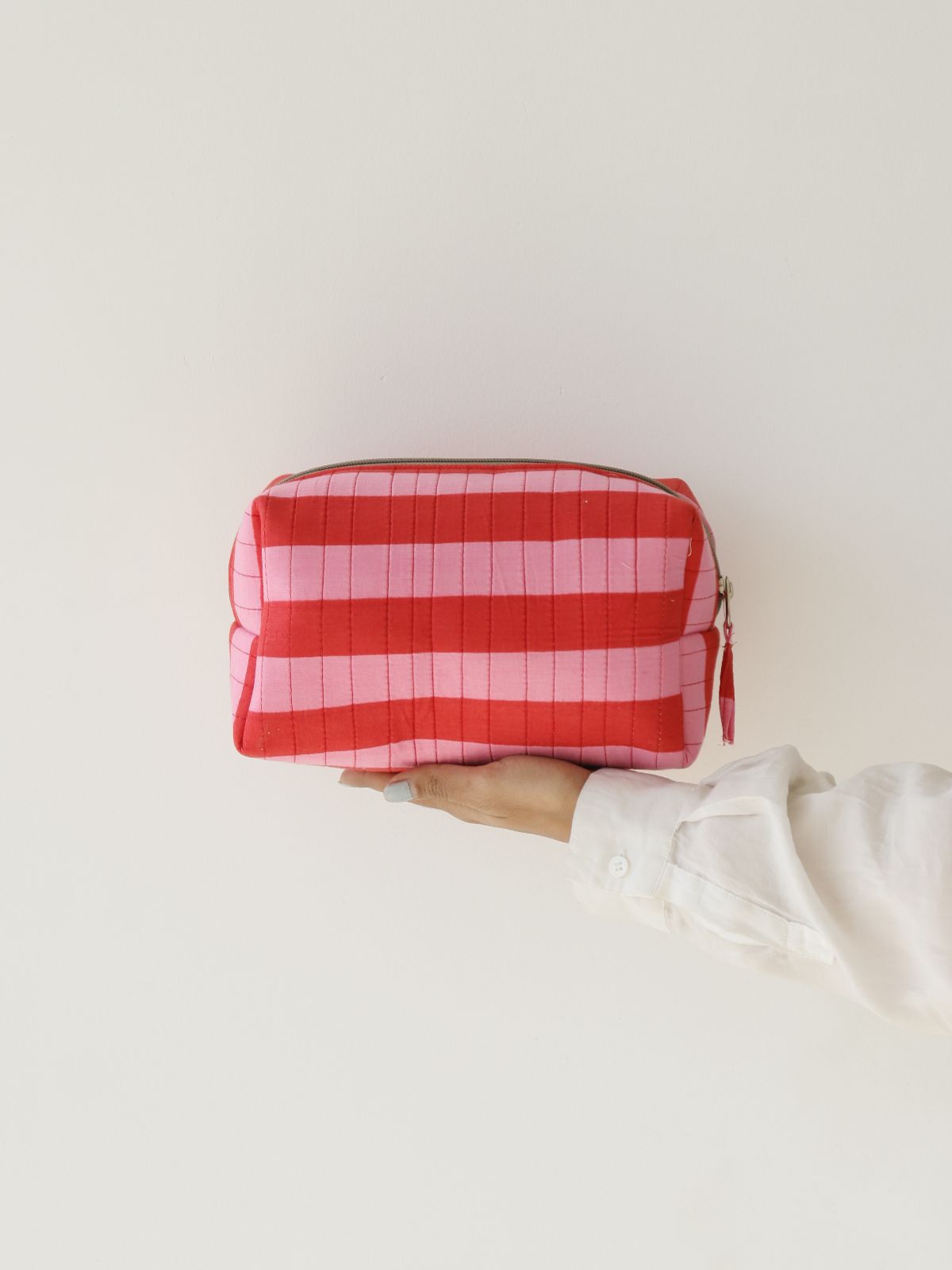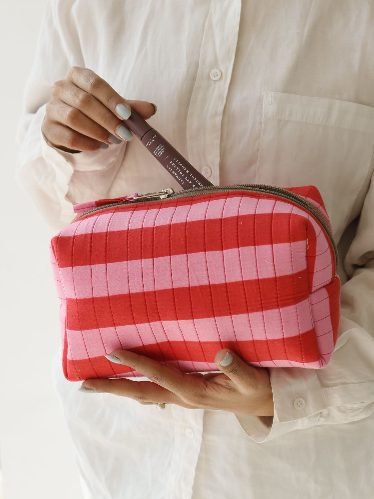 A thoughtfully designed storage solution that transcends typical pouch functionality. This quilted accessory combines practical organization with distinctive aesthetics, featuring a striking pattern that ensures visibility among everyday items. Engineered to accommodate miscellaneous essentials—cosmetics, pharmaceuticals, electronics, and writing instruments—while preventing small objects from disappearing into bag depths. The padded construction delivers both protective cushioning and tactile appeal, establishing it as an indispensable daily companion that balances form with purposeful utility.