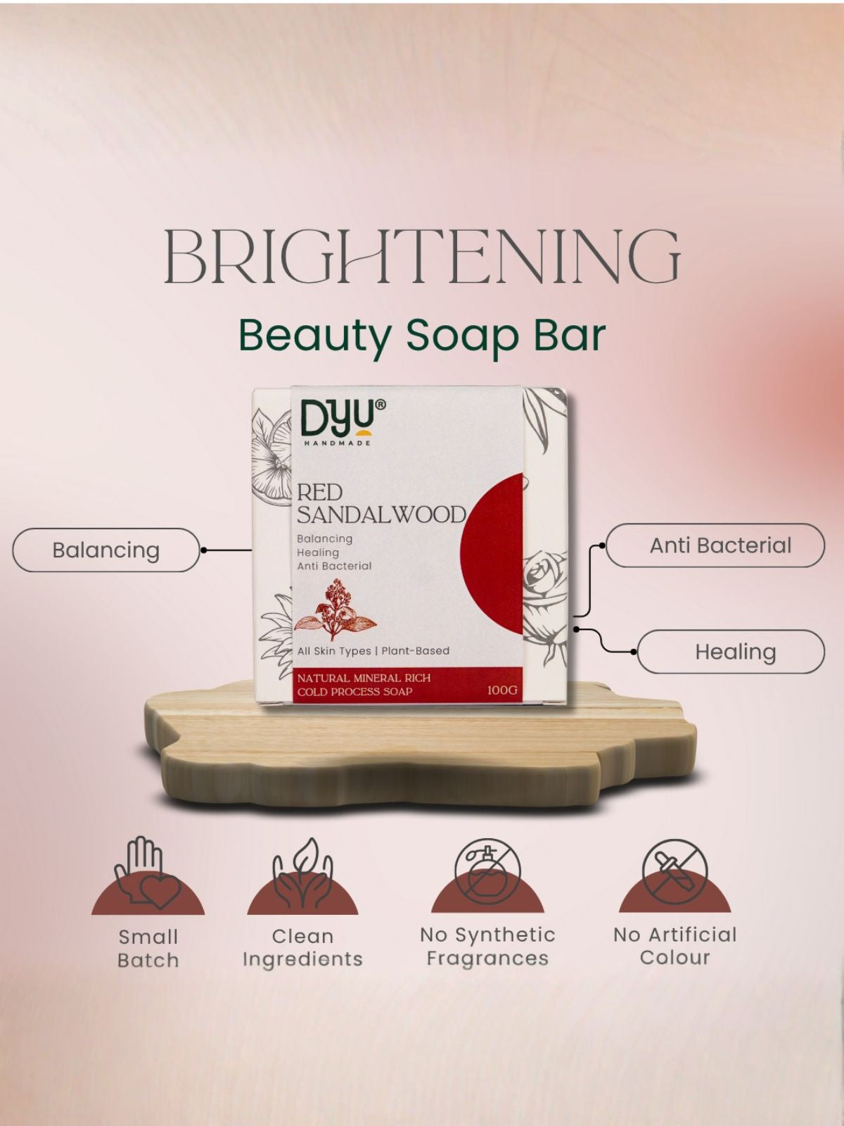 Ground yourself in nature’s calm with DYU Red Sandalwood Cold Processed Soap—a handcrafted bathing bar that purifies, soothes, and restores with every use. Made with pure red sandalwood (rakt chandan) oil, Rhassoul clay, and skin-loving plant oils, this soap is inspired by ancient rituals and elevated by clean, modern simplicity. Rhassoul clay gently detoxifies the skin, removes excess oil, and refines pores leaving skin fresh, smooth, and clarified. At the same time, red sandalwood oil helps fade tanning, reduce blemishes, and restore a natural, even glow with its cooling, anti-inflammatory properties. The base of cold-processed coconut and olive oils delivers a rich lather without stripping away essential moisture, while vitamin E supports skin renewal and antioxidant protection. Whether you're looking to unwind after a long day or refresh dull skin in the morning, this unisex beauty bar offers a grounding, rejuvenating cleanse without any parabens, sulfates, or artificial fragrance. For smooth, glowing skin and a calm, earthy start to your day this is skincare that returns you to your roots.