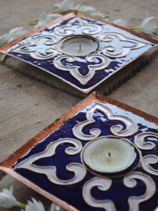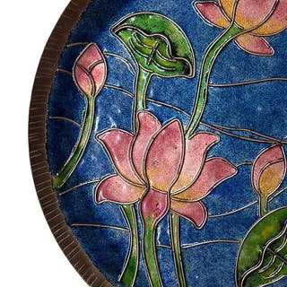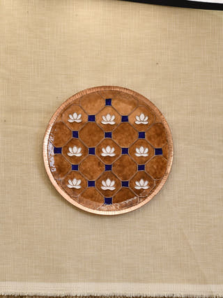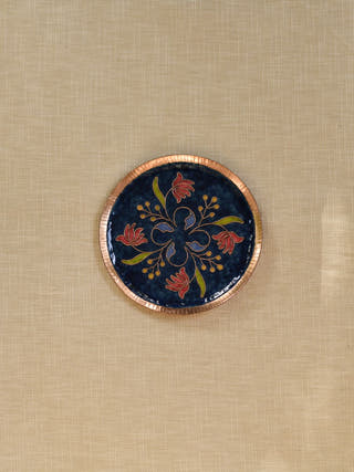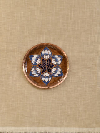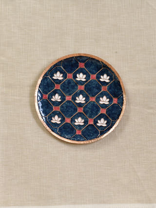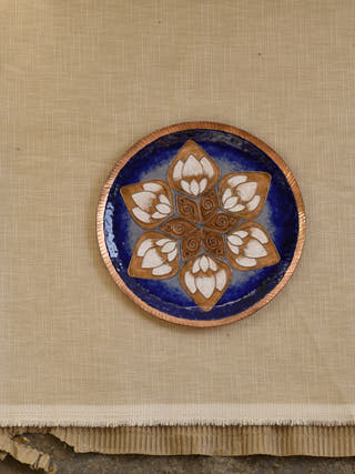 Copper Enamel Wall Plate | Blue Swirling Lotus