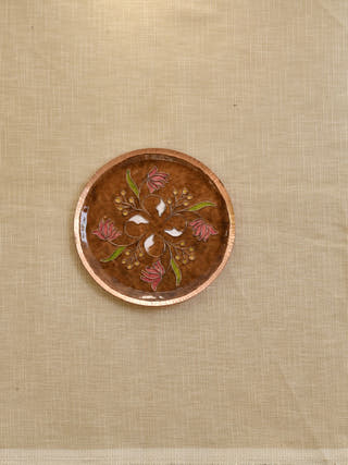 Copper Enamel Wall Plate | Brown Swirling Lotus