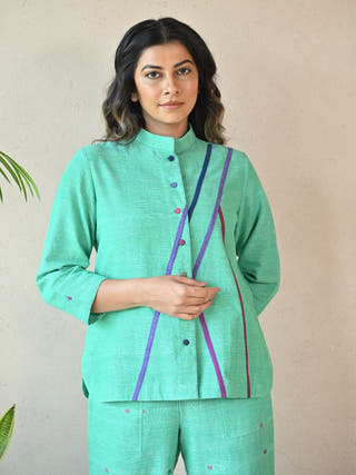 Zuri Panelled Shirt in Green