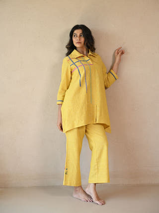 Fiora Panelled Shirt with Embroidered Accents | Yellow