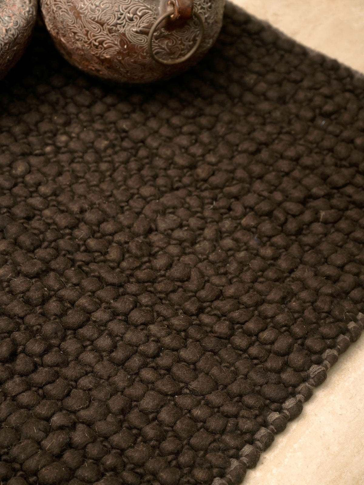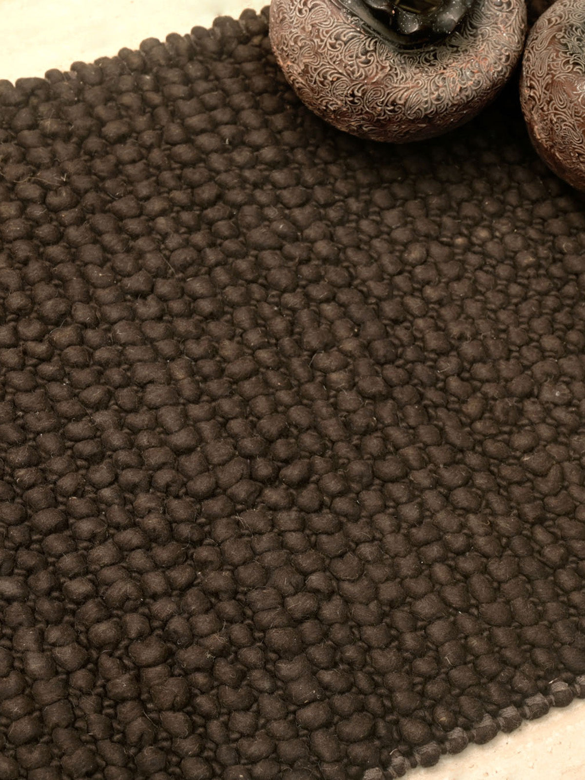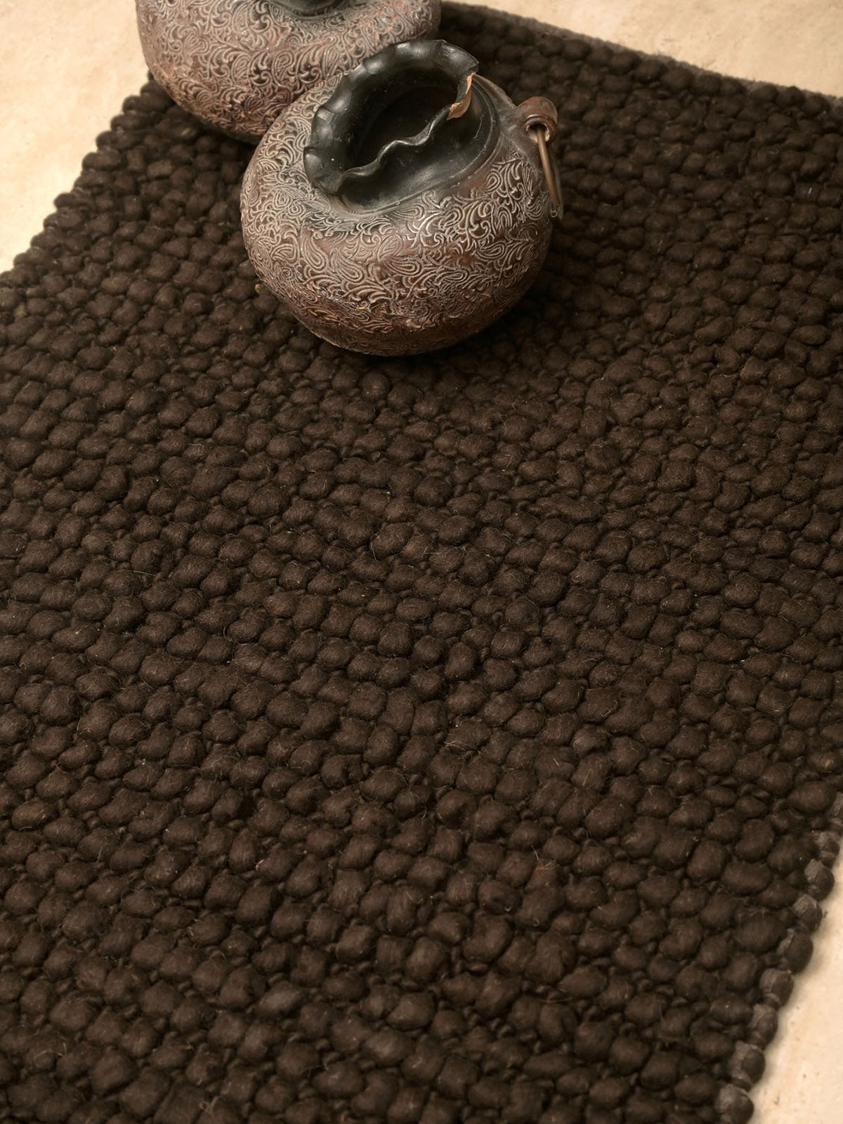 Hand woven wool rugs to give the ultimate regal touch to your home decor. This beautiful door mat is a classic add-on to fit your modern day interiors. The sleek design provides necessary aesthetic in full ethnic flavor, with dark monotone handled by a plethora of subtle features.