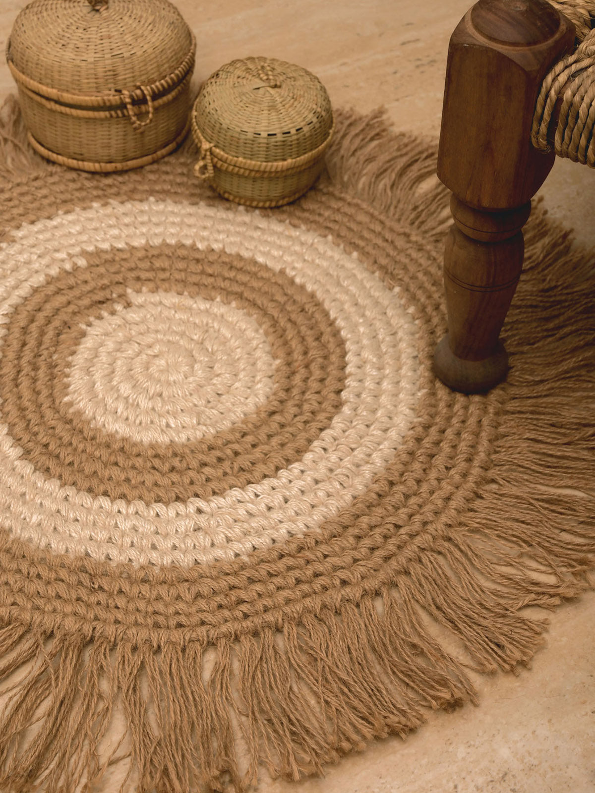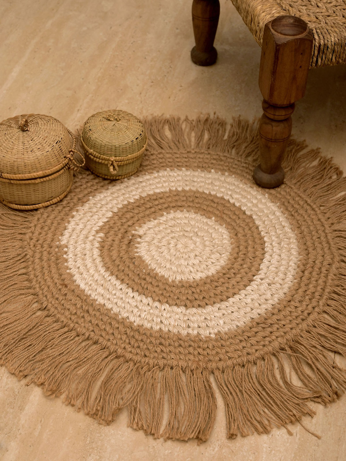 While this doormat was created using machine braiding techniques, it retains its charm and works well in modern settings. Made with special natural jute, this round rug will look lovely in any room of the house, including the living room, bedroom, kitchen, dining room, children's playroom, children's bedroom, home office/study, and conservatory.