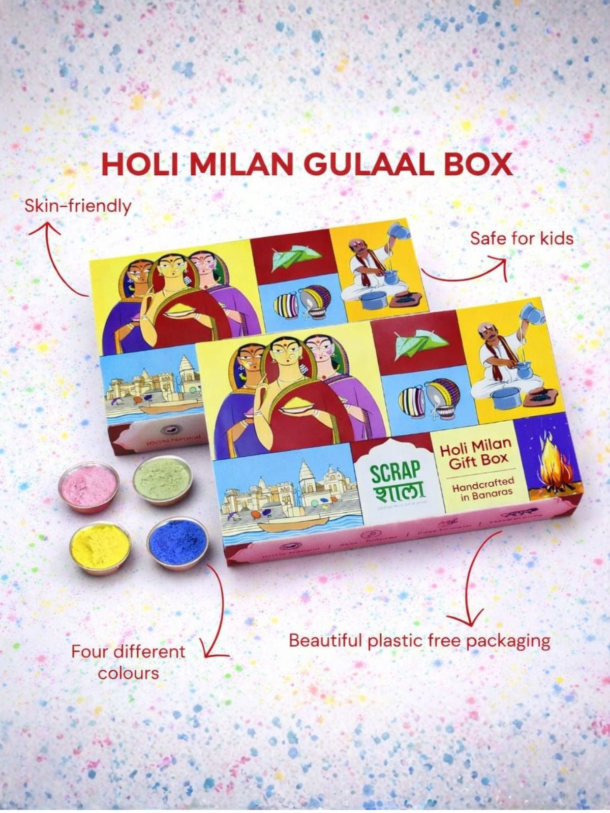 Holi Milan Gulaal Box | Four Packs of Natural Gulaal | Handmade in Banaras