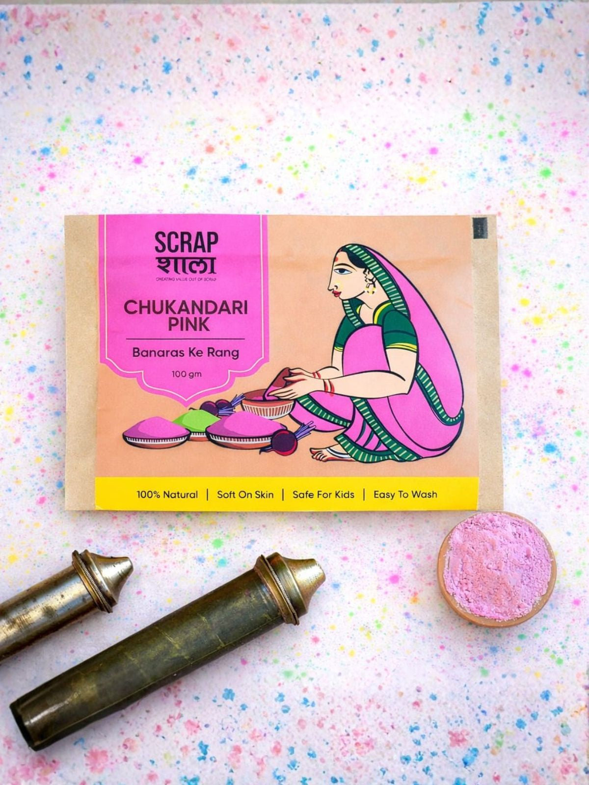 The Holi Milan Gulaal Box by Scrapshala is an effort to revive the beautiful tradition of celebrating Holi with natural, safe, and chemical-free gulaal colours. Thoughtfully curated for mindful celebrations, this box lets you play Holi carefree and consciously with your loved ones. All colours are completely handmade, finely filtered, and naturally scented, offering a silky-soft texture that is gentle on the skin and a joy to use for family, friends, and children.