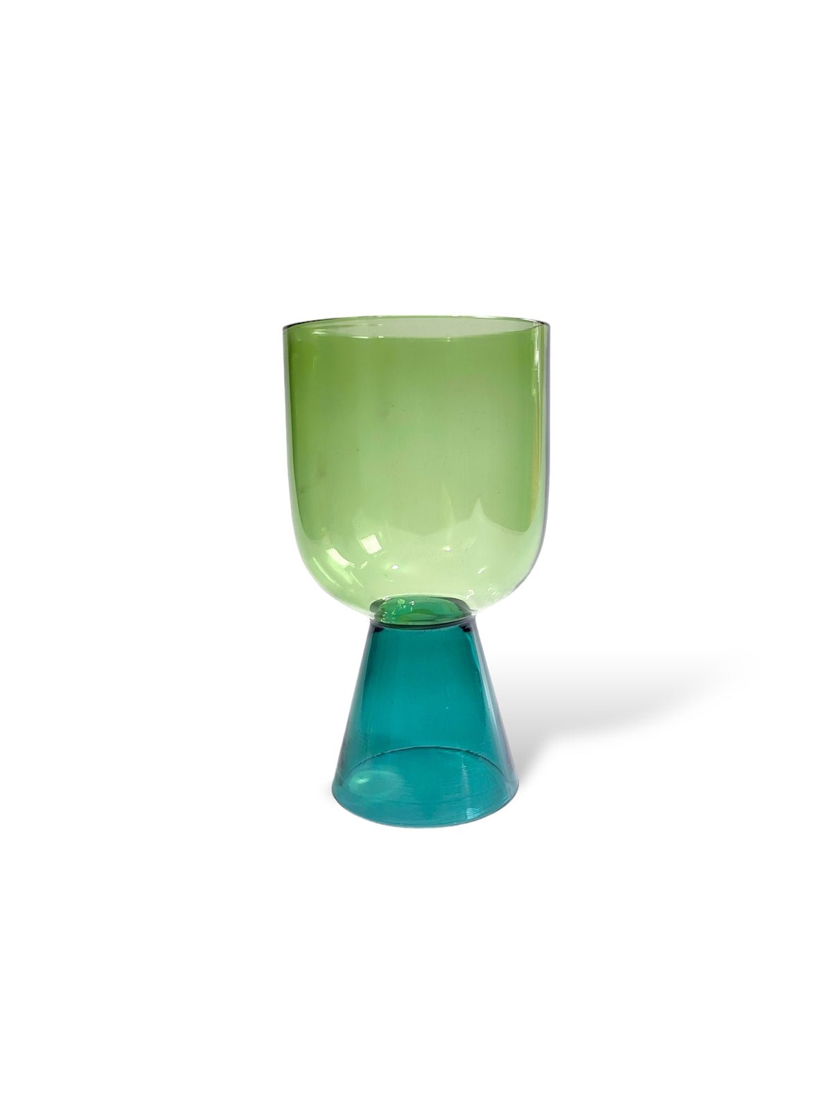 A set of two tall, handcrafted tumblers with a vibrant green top and a deep green base. Made from borosilicate glass, their footed design and large size make them perfect for serving water, juice, or mocktails with a touch of style.