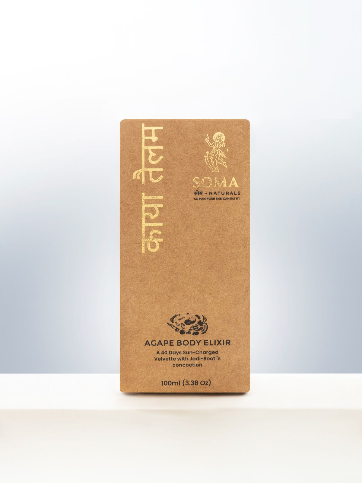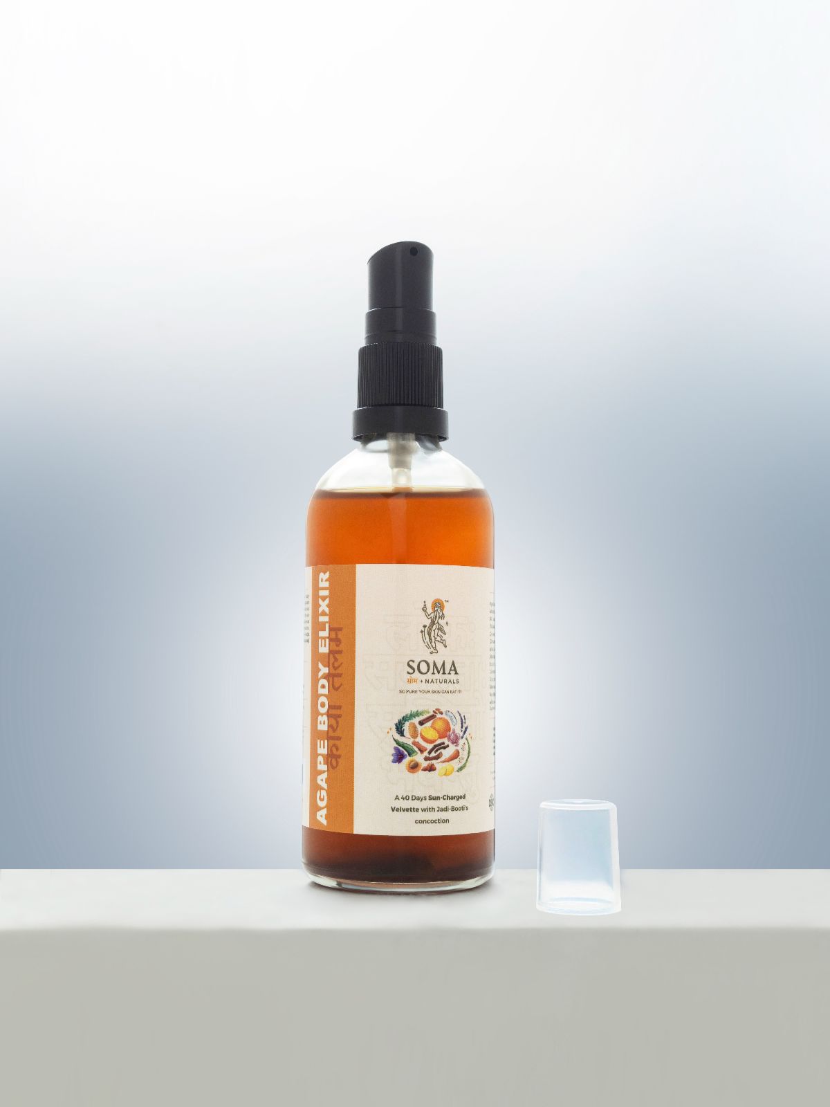Experience the ultimate protection for your skin with Agape Body Oil, a luxurious blend of wood-pressed coconut oil, premium herbs, and essential oils. Crafted with care over 40 Working Days under the sun, this natural elixir nourishes and safeguards your body's largest organ, drawing from centuries of Ayurvedic wisdom to balance your tridoshas. Unveil the secret to radiant, rejuvenated skin with over 25 potent oils and herbs meticulously combined for your wellness.