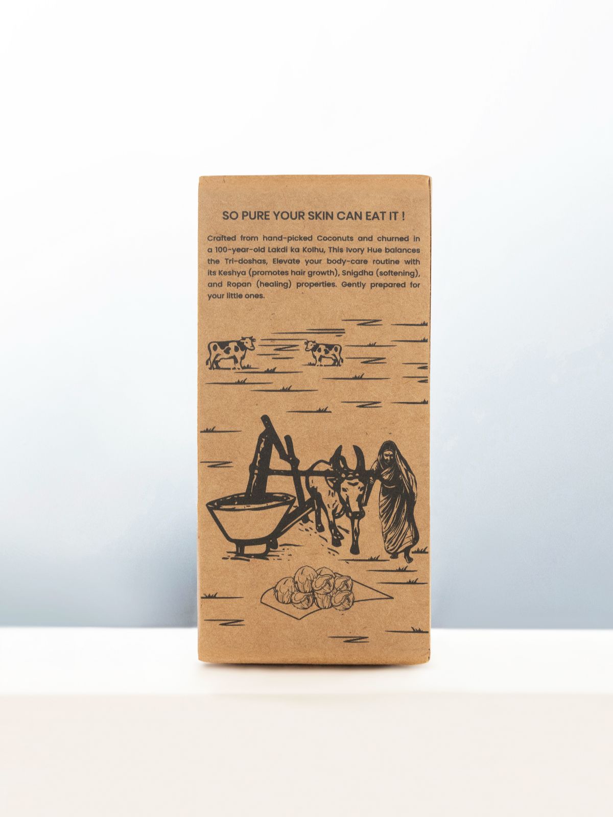Discover the transformative power of purity with the cold-pressed coconut oil, meticulously crafted in small batches using the traditional Lakdi ka Kolhu method. Experience its Keshya (promotes hair growth), Snigdha (softening), and Ropan (healing) properties, elevating your self-care routine. Embrace the epitome of purity, allowing your skin to readily absorb its nourishing benefits.