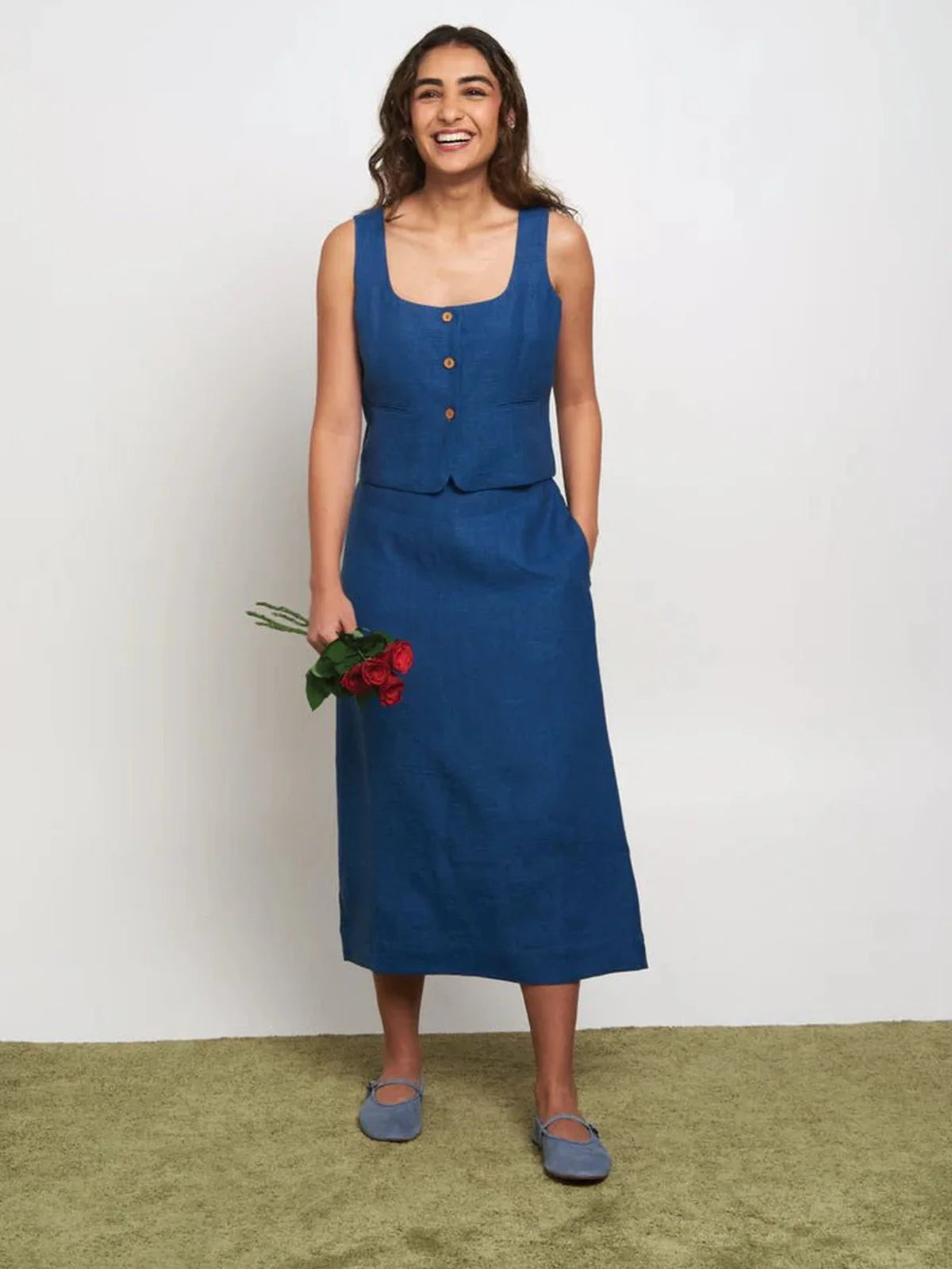 Made from high-quality certified linen. Ethically hand dyed with natural indigo in India.