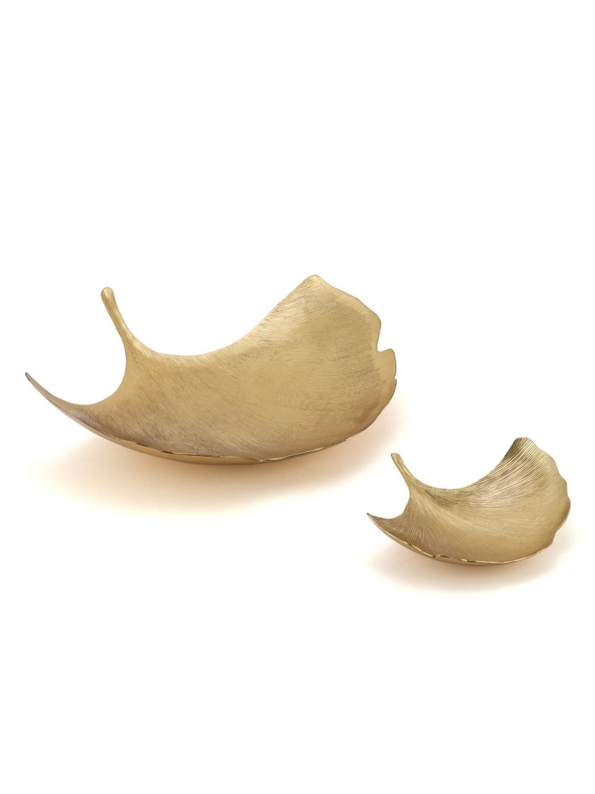 Ginkgo leaf platter is inspired from the ginkgo leaves. Ginkgo is highly unusual nonflowering plants. The organic form of this platter is the key highlighting feature of this product. This handcrafted, piece shows the detailing of the veins and the skill of the metal artisan. It is made in brass, using our age old nakashi craft. Nakashi Craft is one of the most detailed and time consuming craft. Ginkgo leaf platter serves the purpose of fruit bowl, serve ware, etc.
